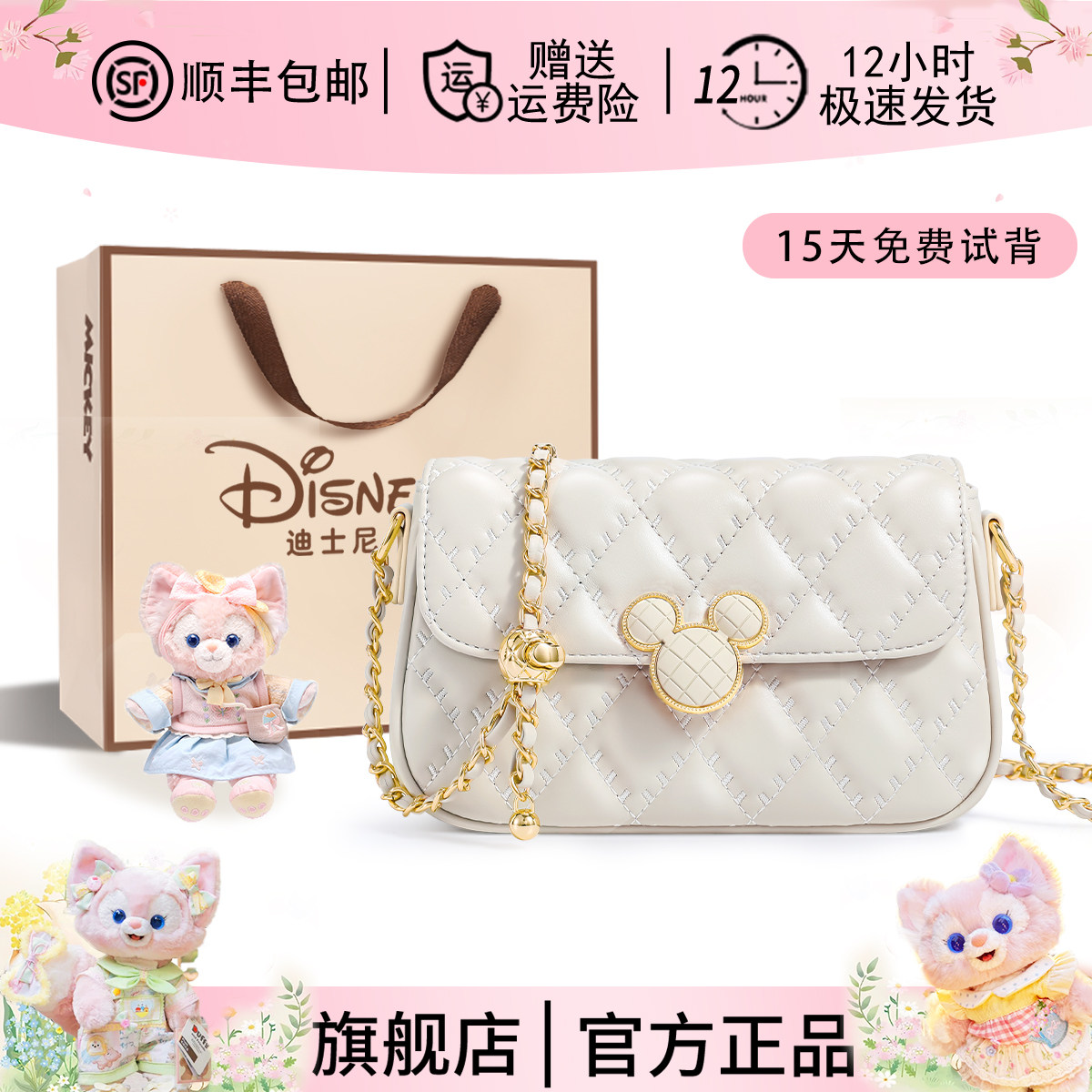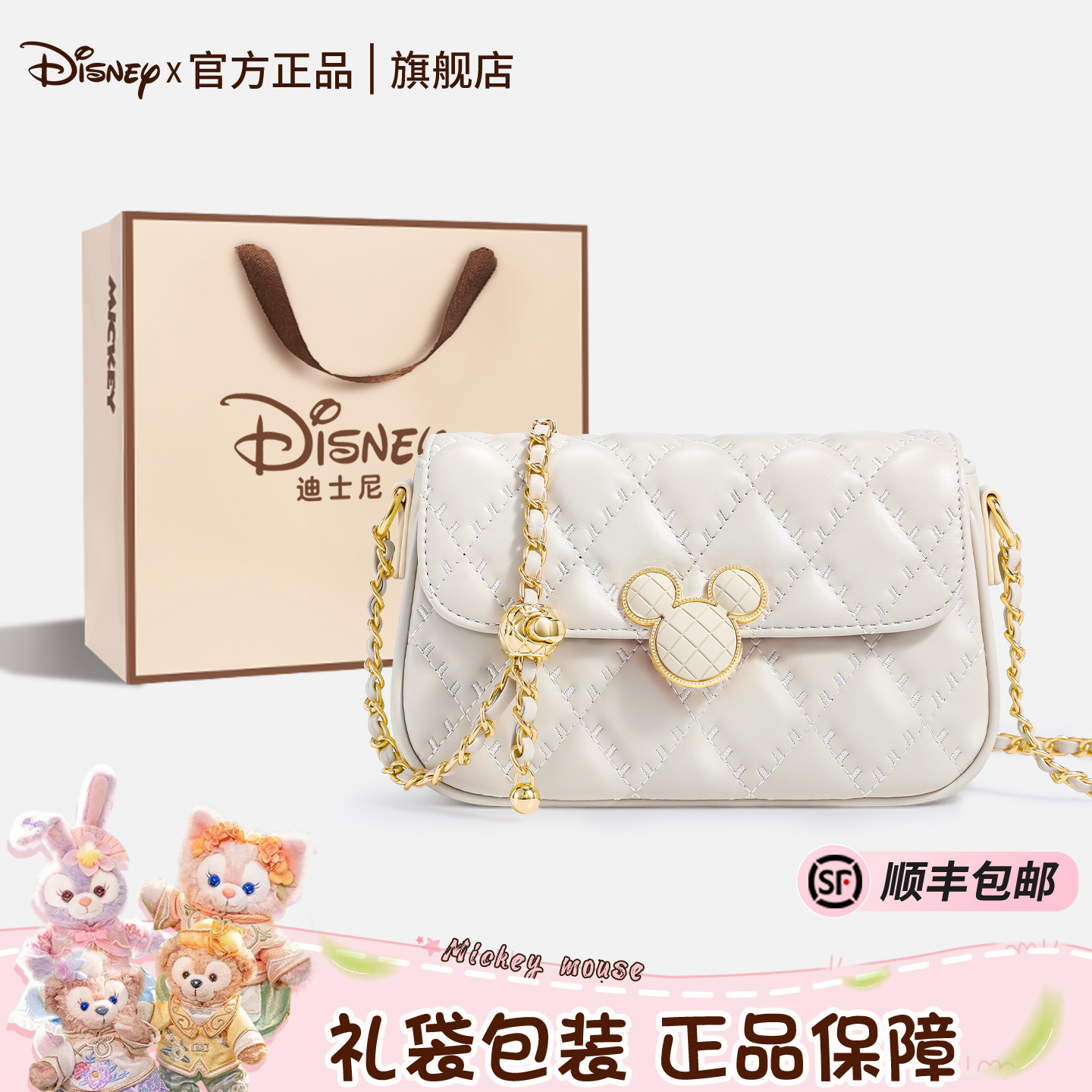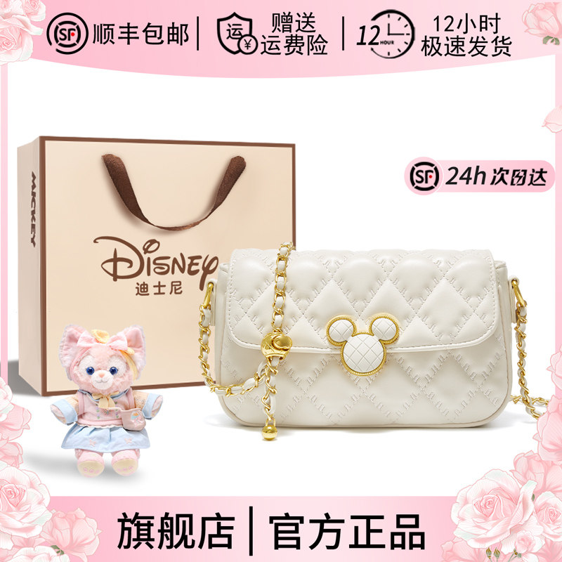 迪士尼正品包包女款斜挎包女式2026新款生日礼物新年精致通勤白色