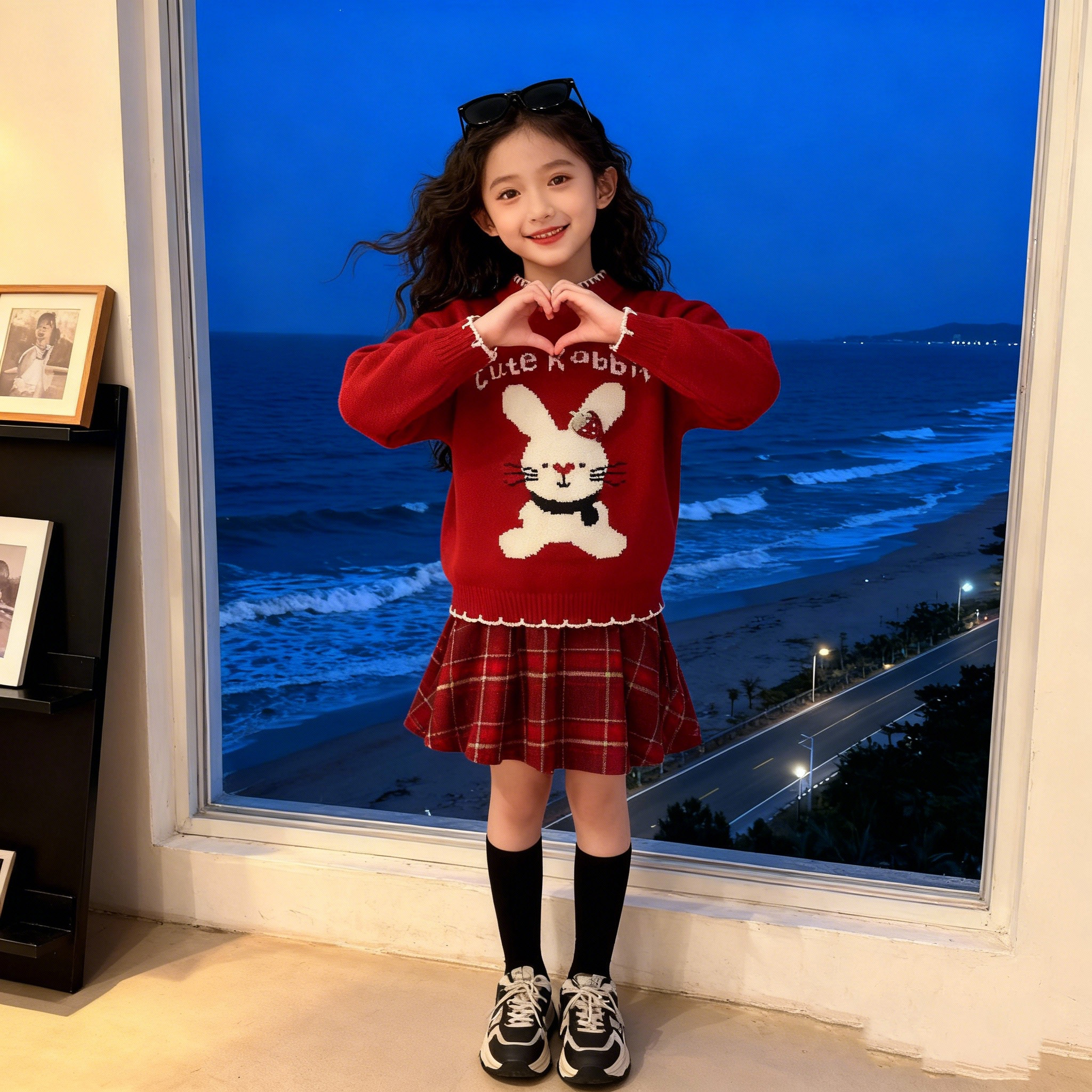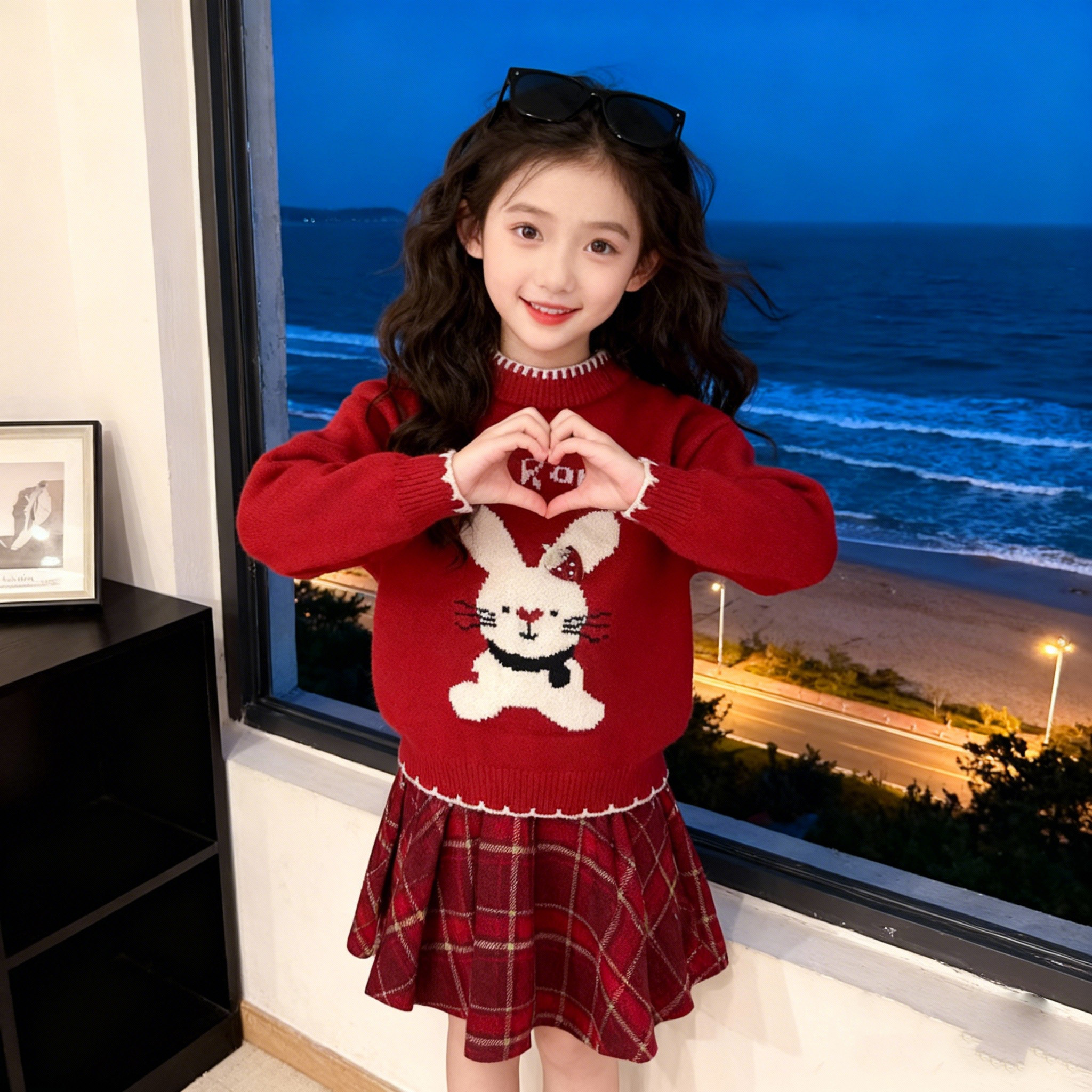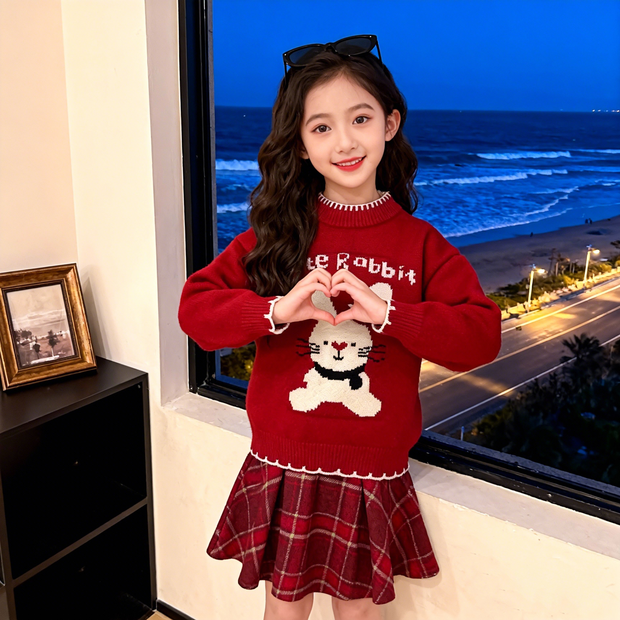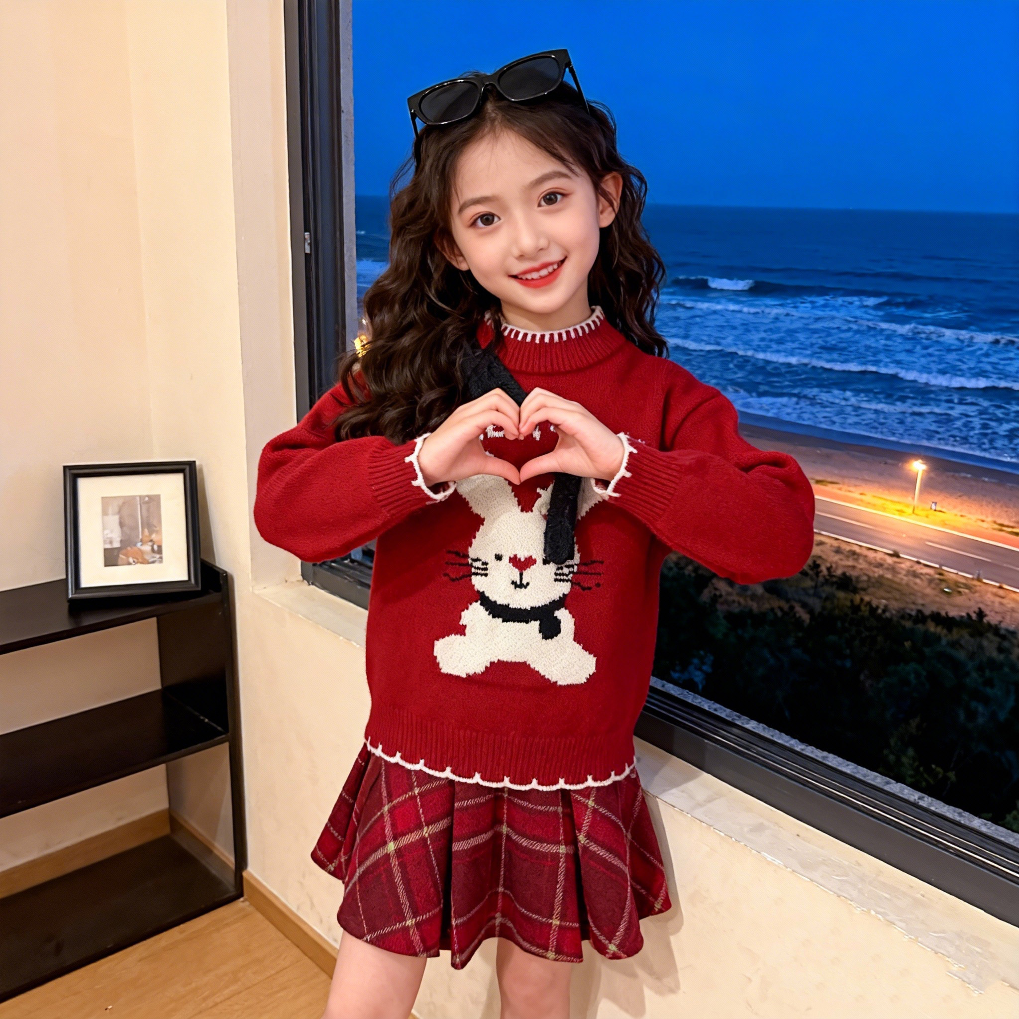 女童红色套装2026新款秋冬装儿童洋气时髦喜庆毛衣女宝裙子两件套