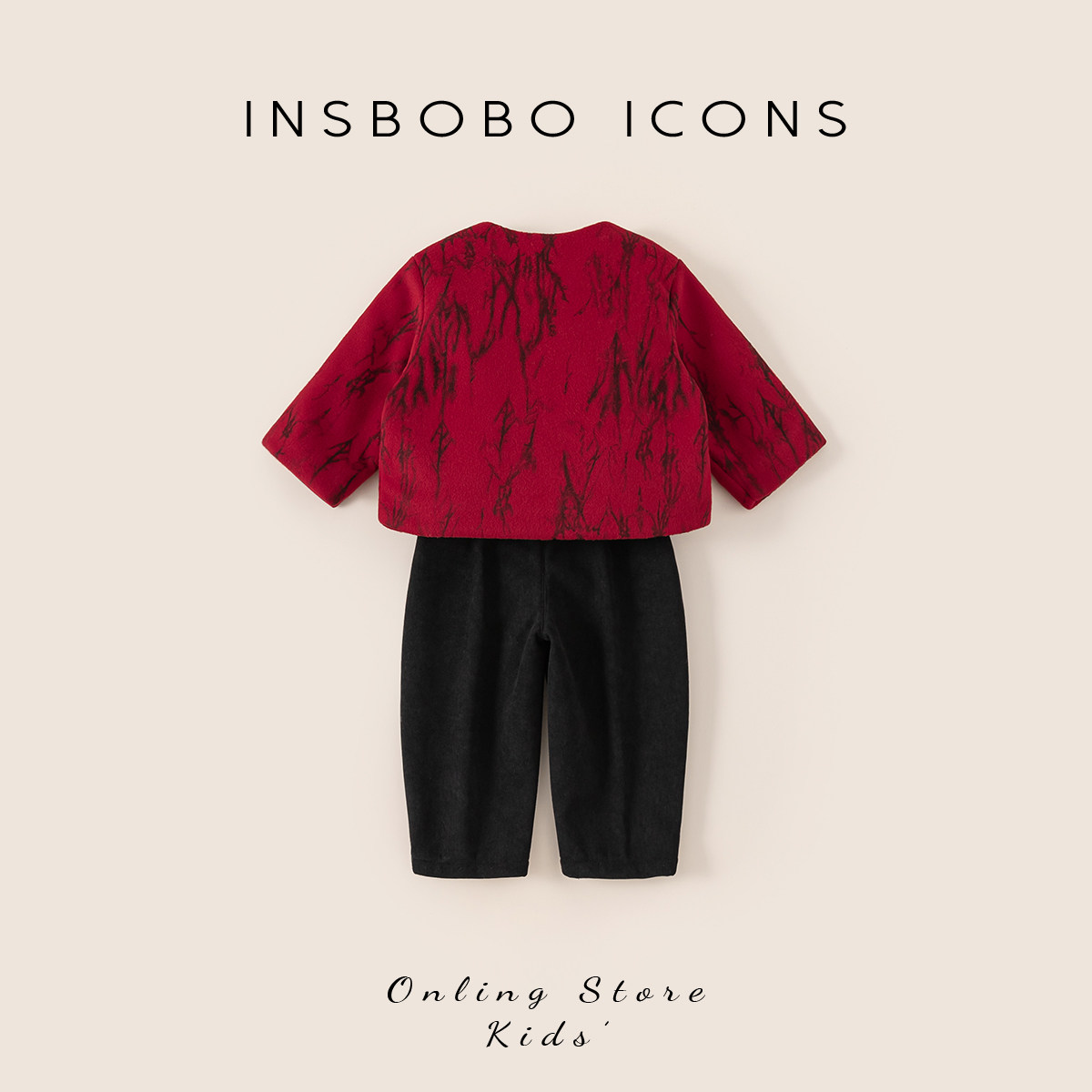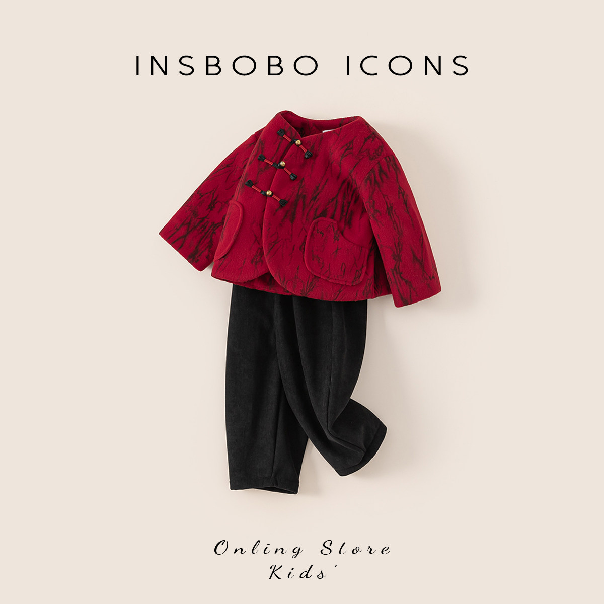 INSbobo男童年服儿童衣服冬季加厚拜年服2025新款宝宝新中式套装