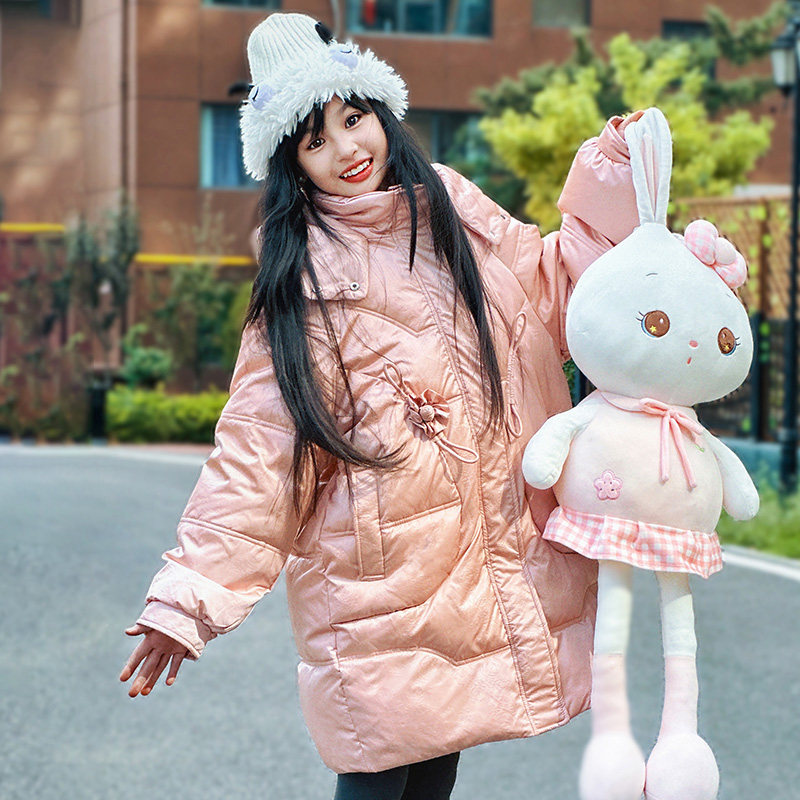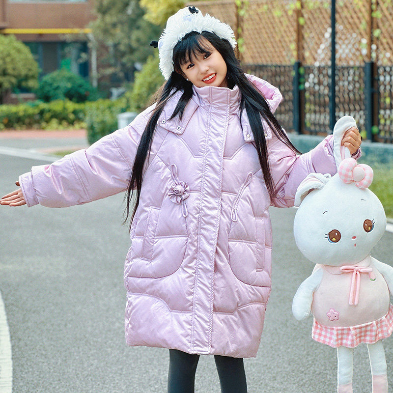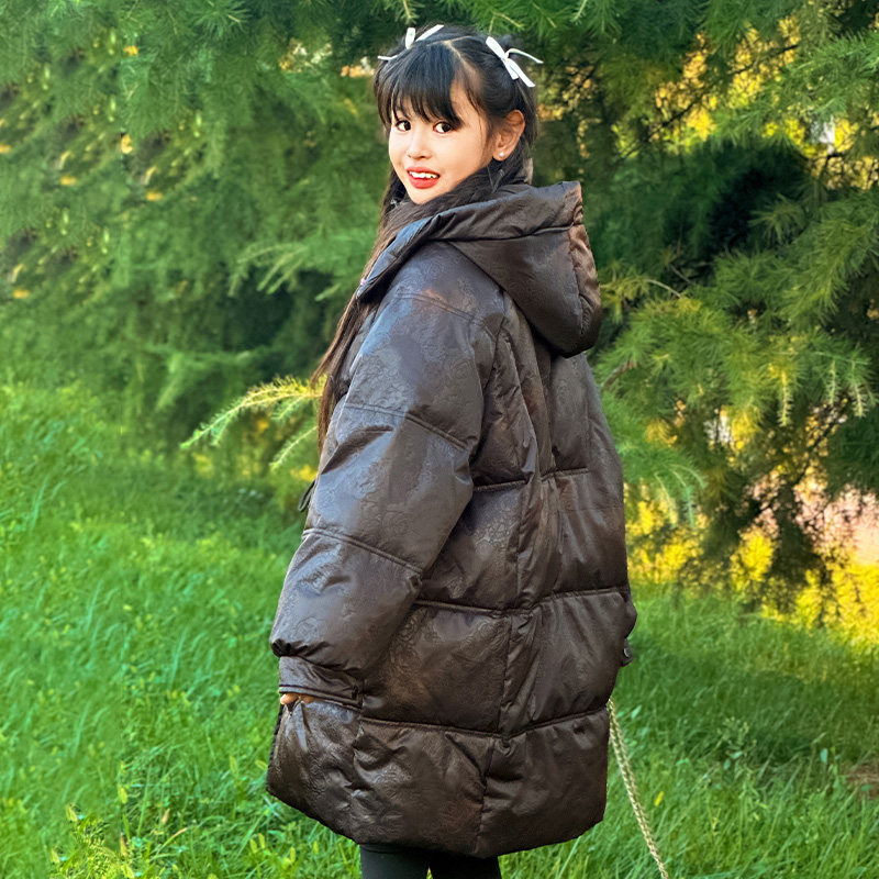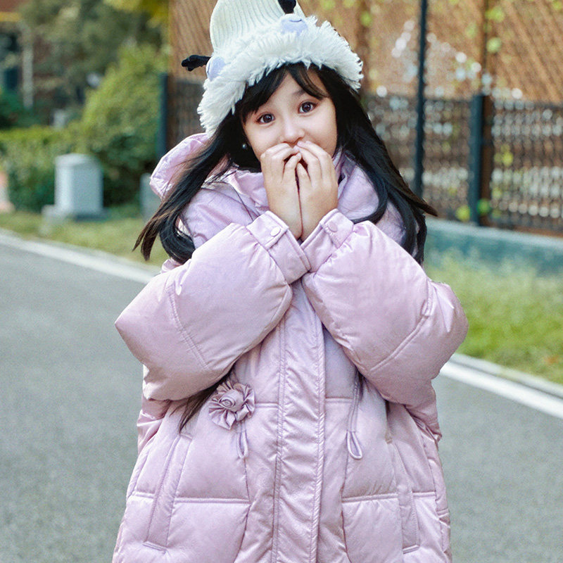 休闲韩版大衣中长款儿童羽绒服白鸭绒女款冬季保暖中大童亲子童装