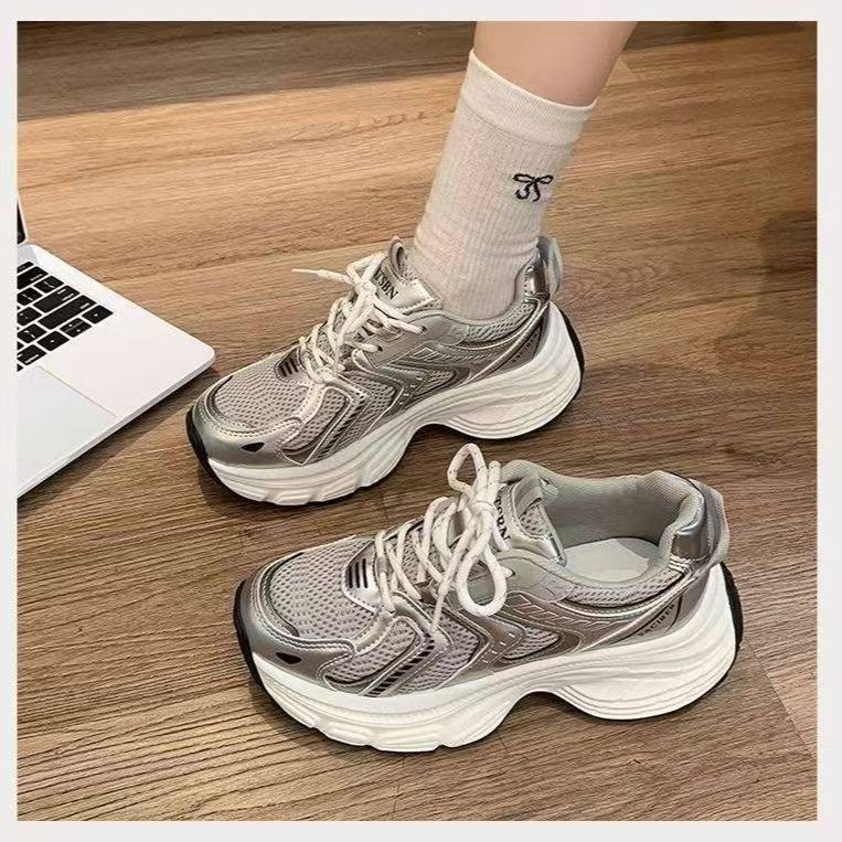 老爹鞋女童鞋子2026新款爆款女通勤百搭小白鞋增高厚底休闲运动鞋