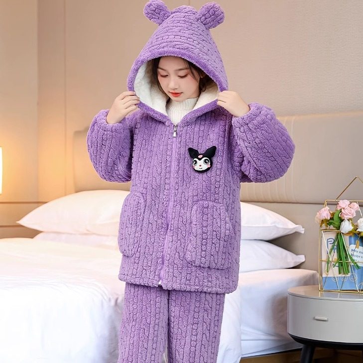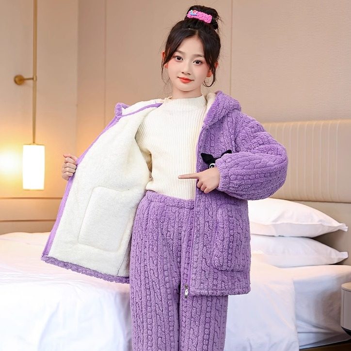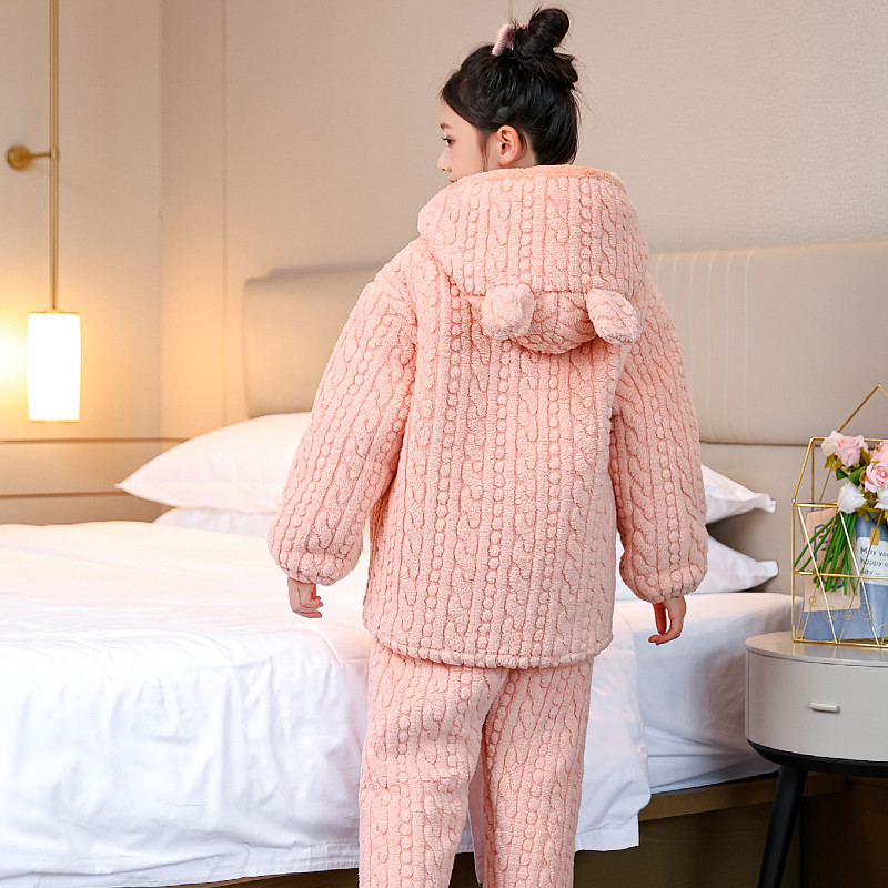 新款女童家居服套装冬季女孩加绒加厚保暖睡衣中大童两件套可外穿