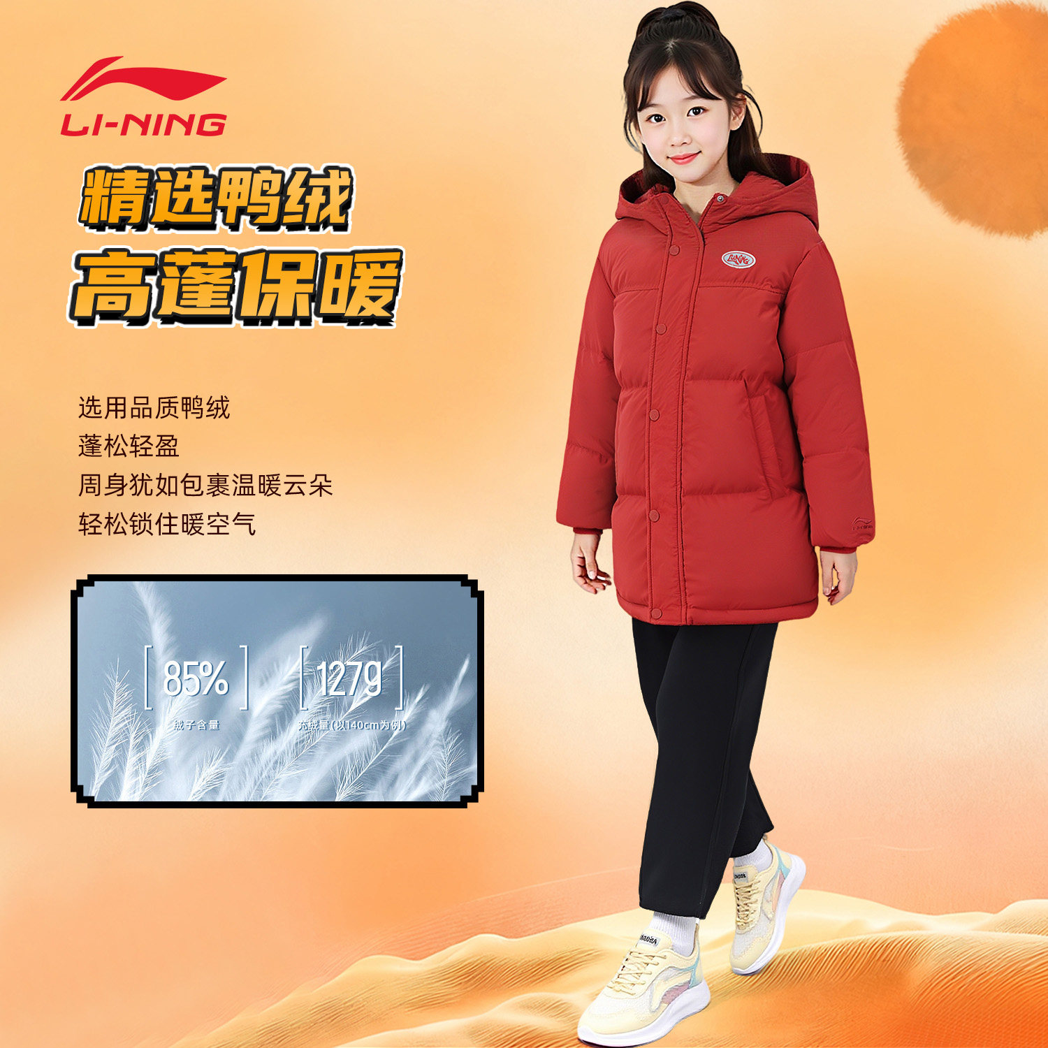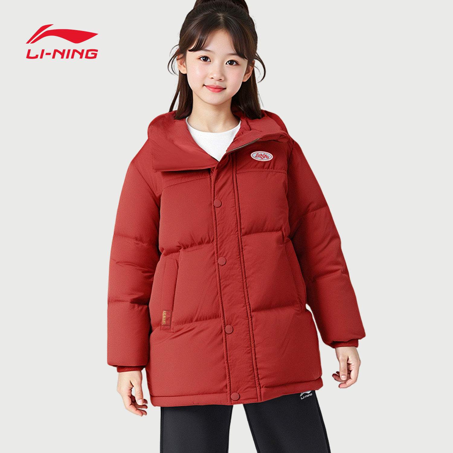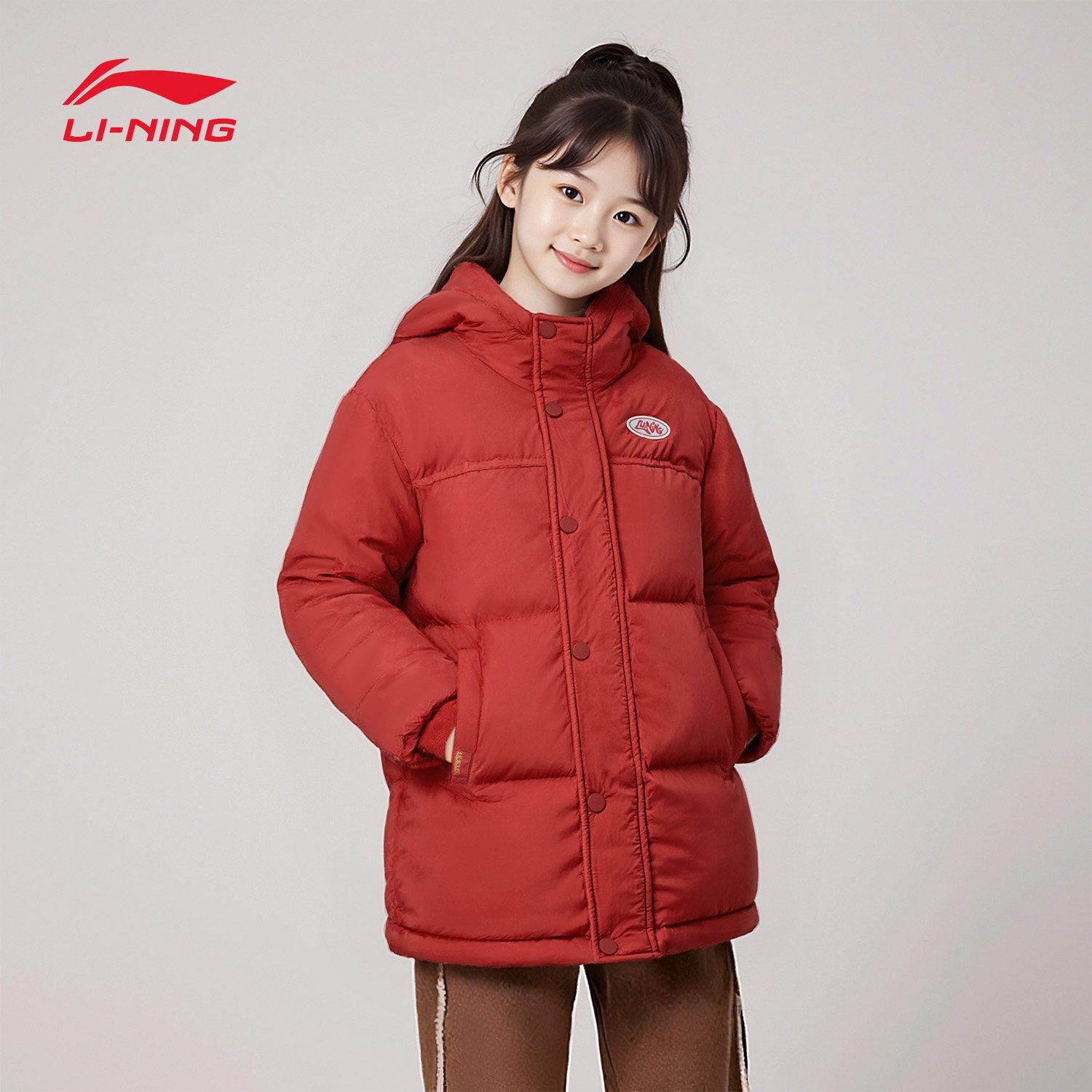 李宁儿童羽绒服男童2026冬季新年大童中国红色本命年青少年童装女
