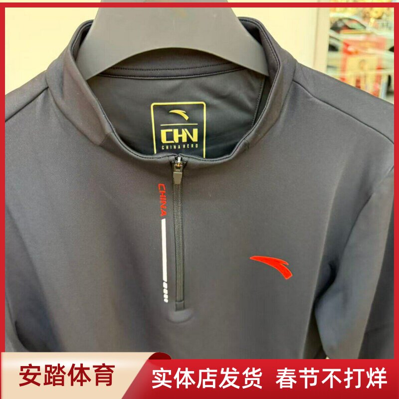 安踏加绒长袖t恤男CHN系列商场同款半拉链卫衣通勤上衣152617407