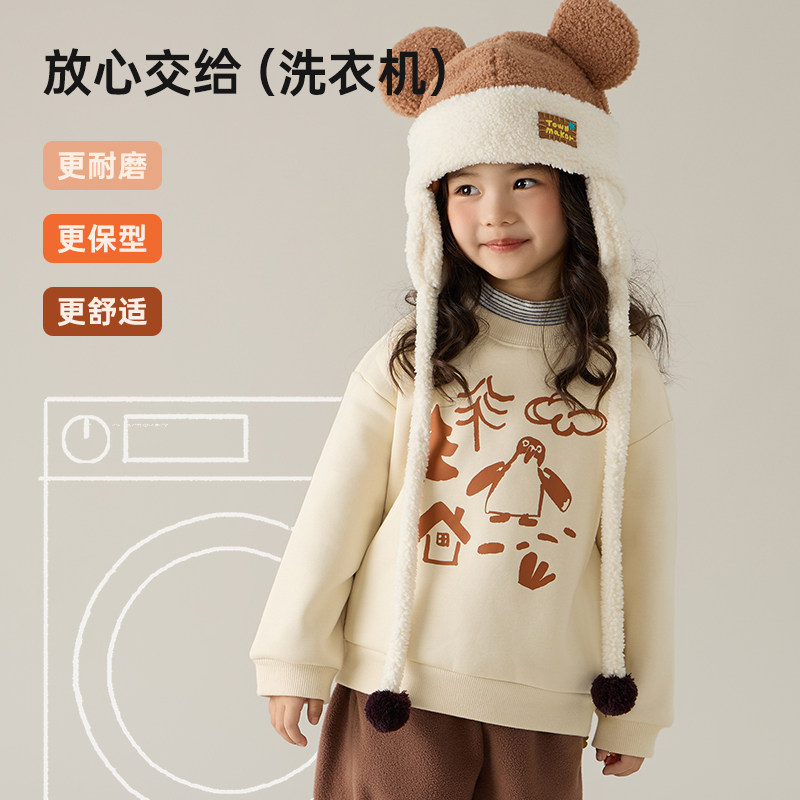 【粒粒绒】papa爬爬冬季儿童卫衣男女童加绒加厚保暖马年洋气上衣