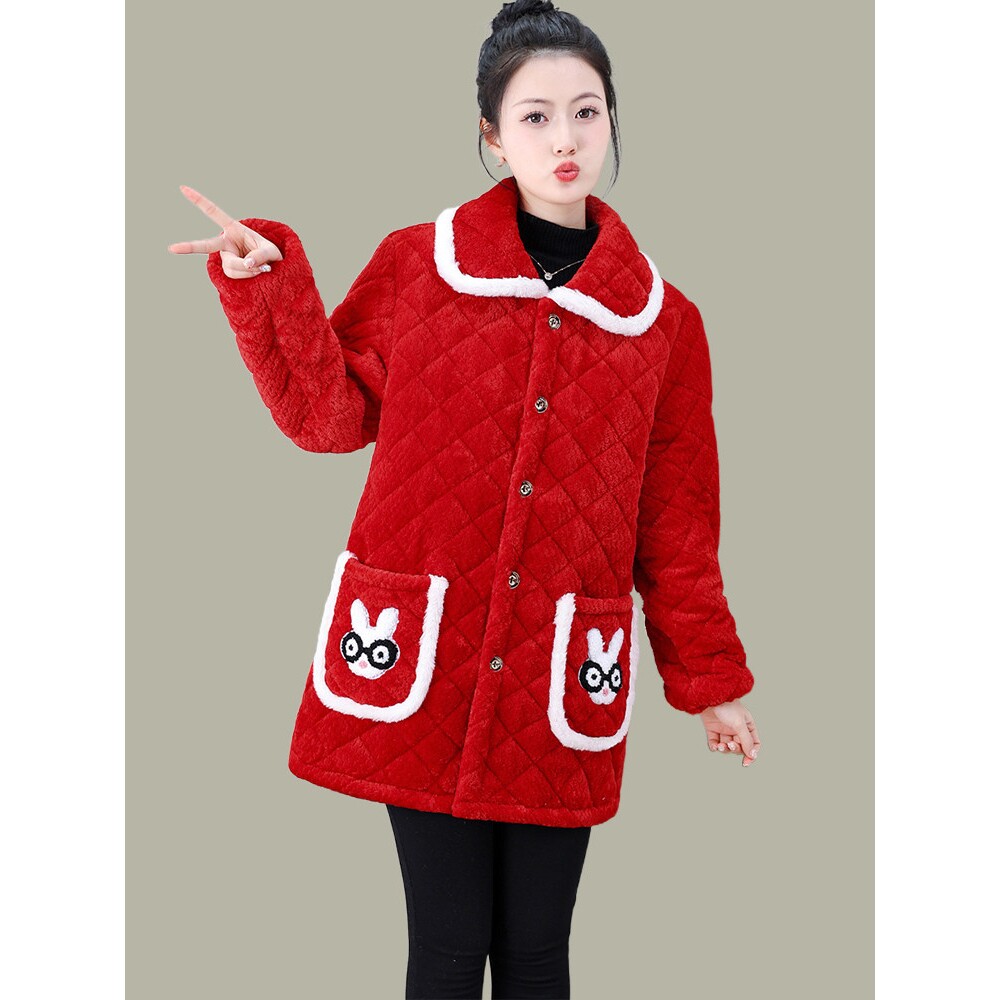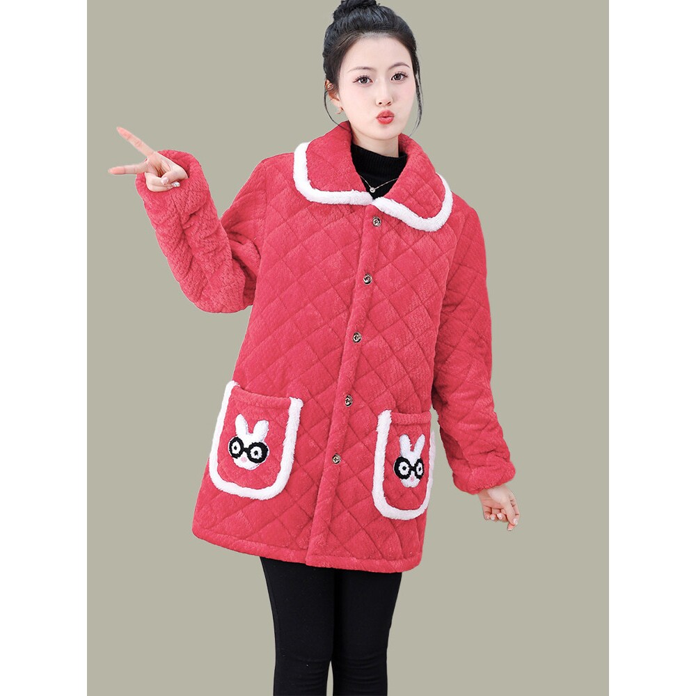 冬季新款加绒加厚棉服外套女装时尚百搭三层夹棉保暖罩衣防寒棉衣
