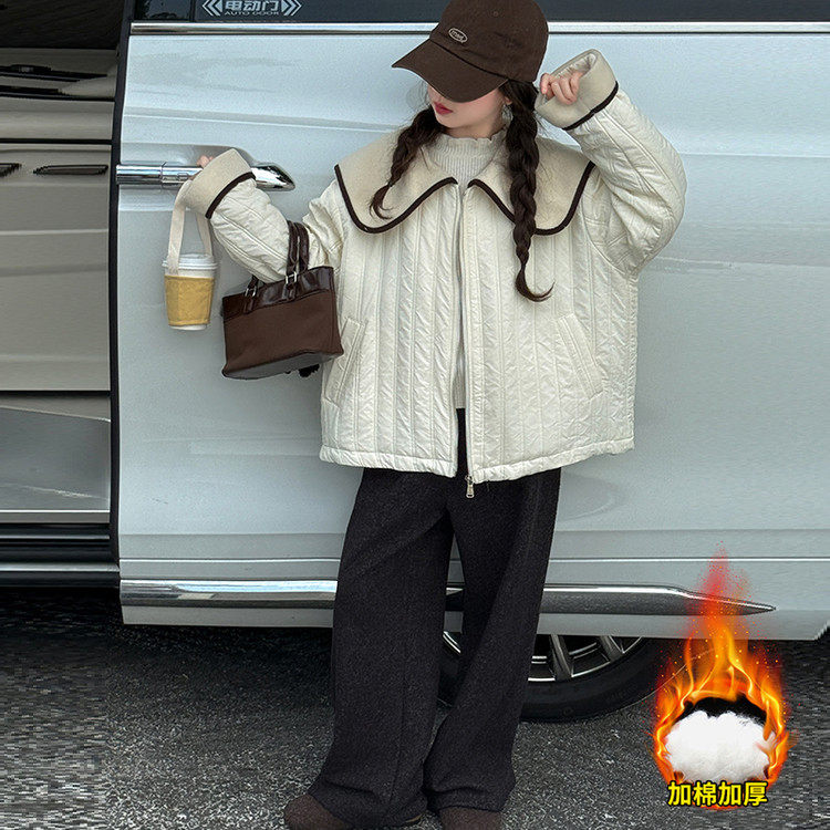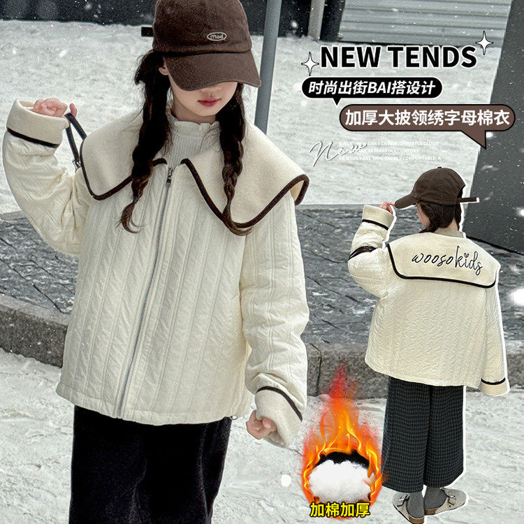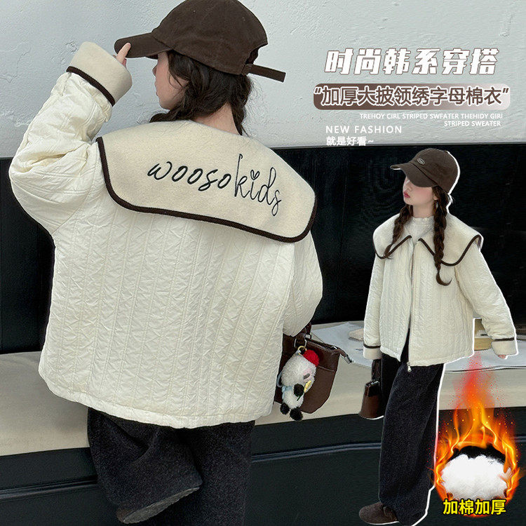 女童棉服2025新款秋冬儿童洋气时髦休闲夹克中大童百搭大翻领上衣