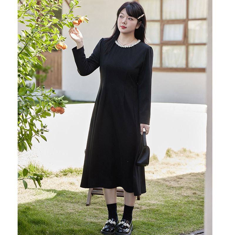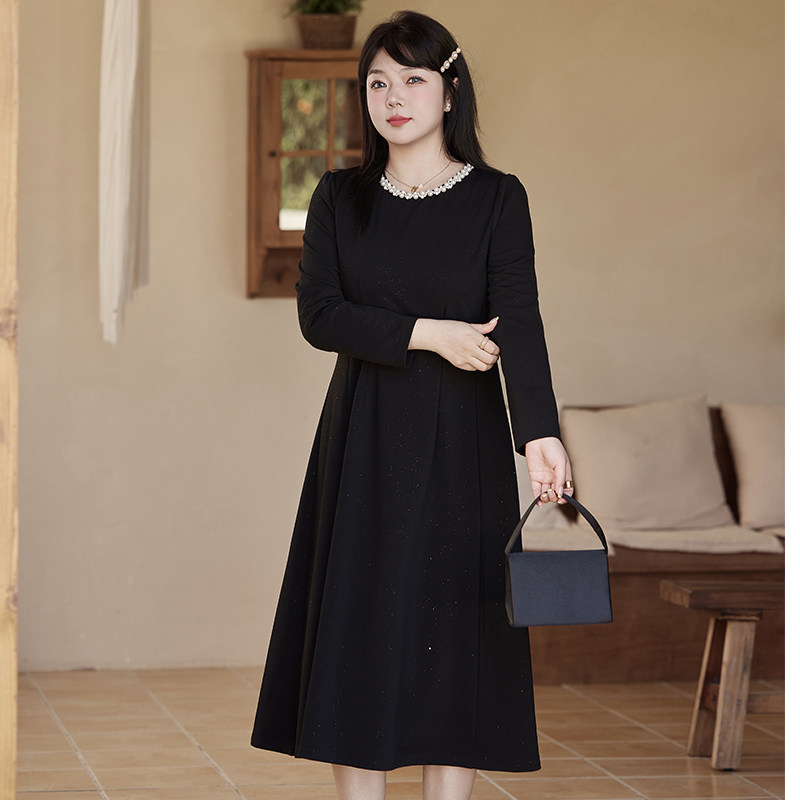 绮娑冬装新款气质大码胖MM针织连衣裙高级感收腰A字内搭小黑裙长