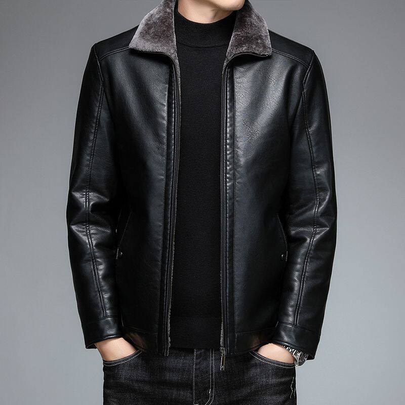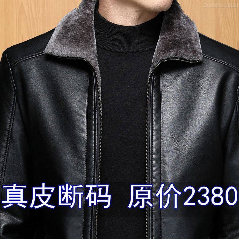 清仓海宁真皮皮衣男中年男士绵羊皮夹克秋冬加绒加厚外套皮毛一体