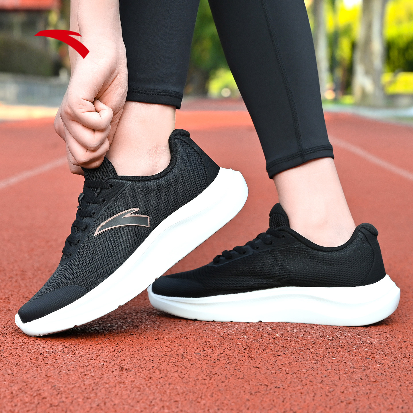 安踏运动鞋女款2026新款春季黑色轻便不累脚跑鞋女士休闲跑步鞋子