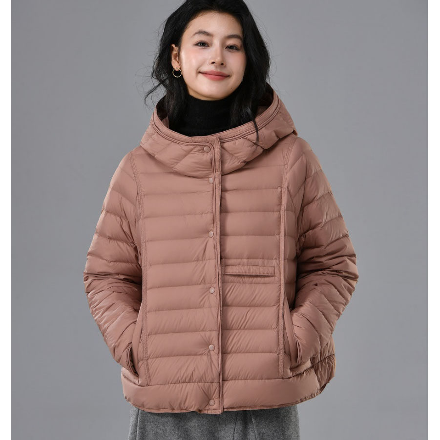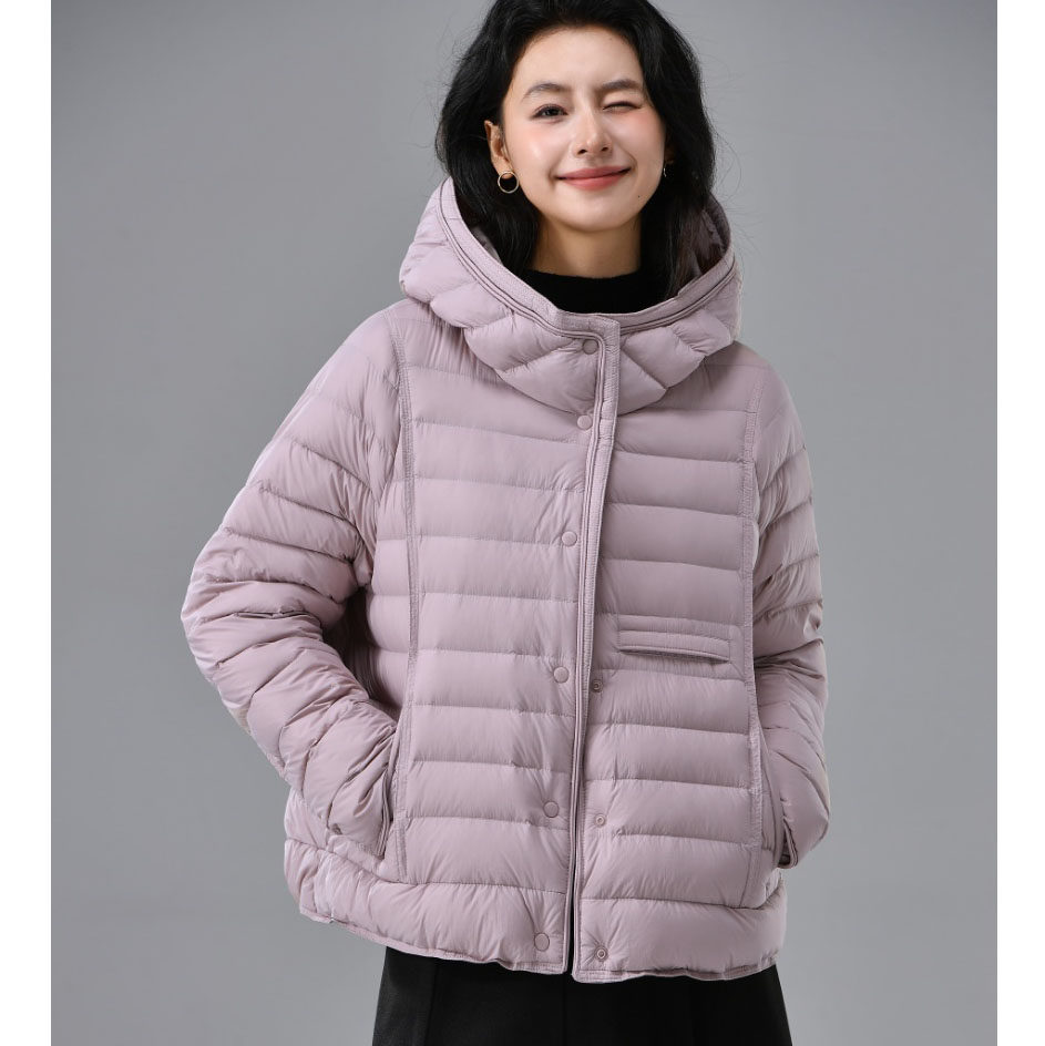 正品2025冬装新款90白鸭绒羽绒服女休闲时尚连帽排骨感保暖外套潮