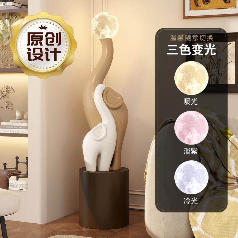 创意大象客厅落地摆件电视柜旁边大型沙发艺术灯轻奢高级感装饰品