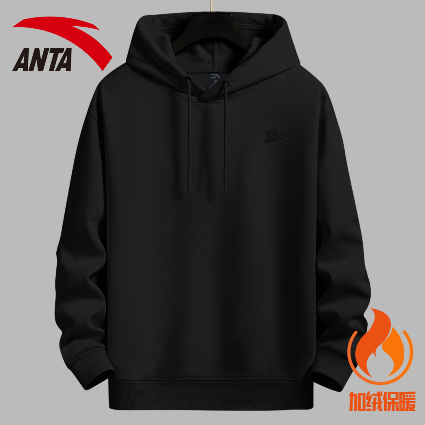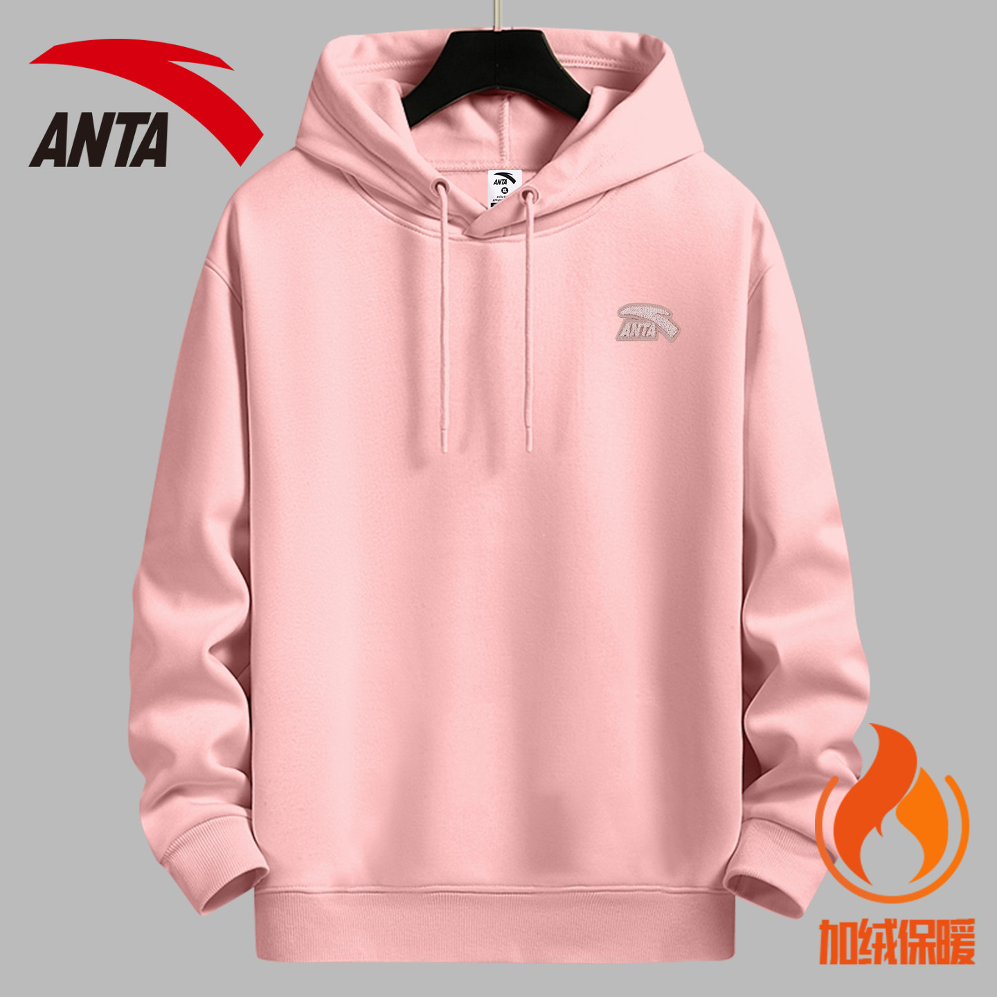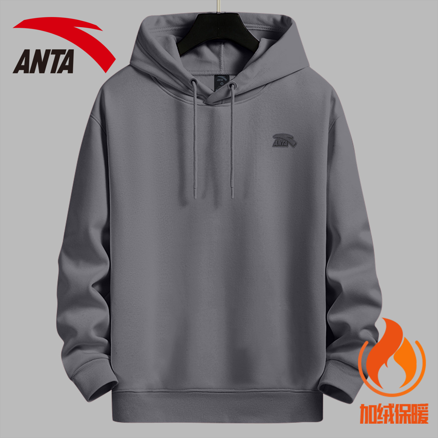 安踏连帽卫衣男青少年酒红色复古美式潮流宽松套头衫冬季加绒外套