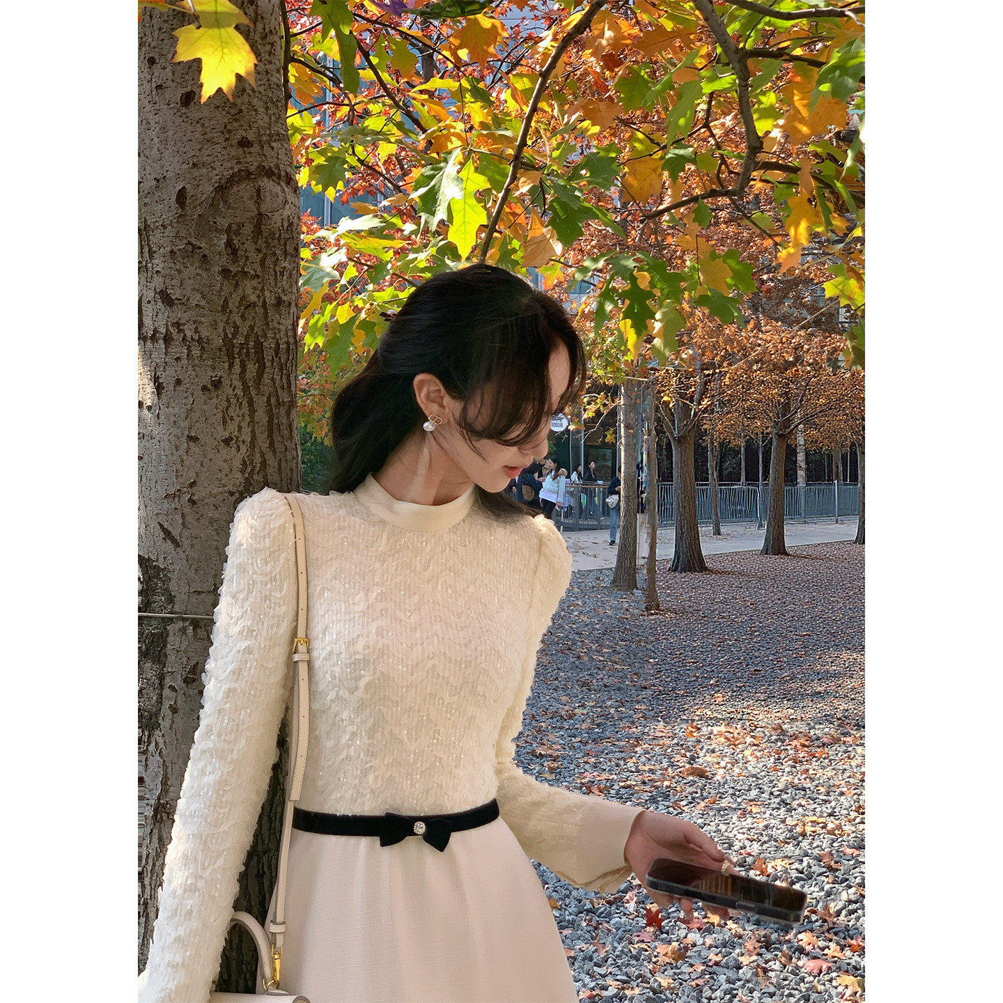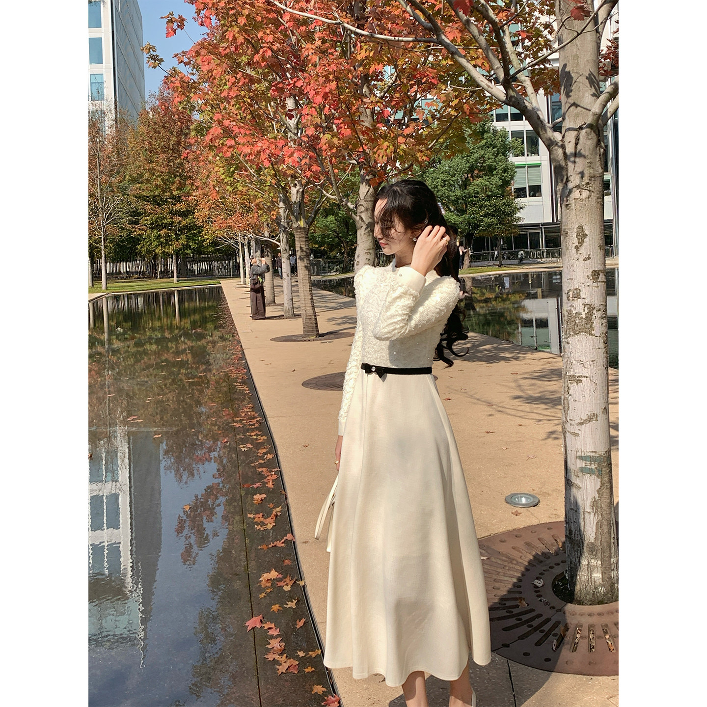 韩语琳 法式优雅长袖连衣裙女春季新款大方得体绝美收腰气质长裙
