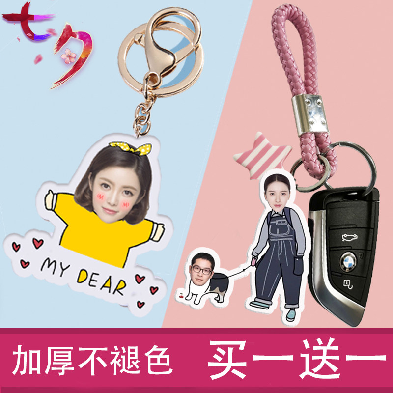 钥匙扣照片定制 情侣个性创意双面韩国可爱定做车挂件diy亚克力女