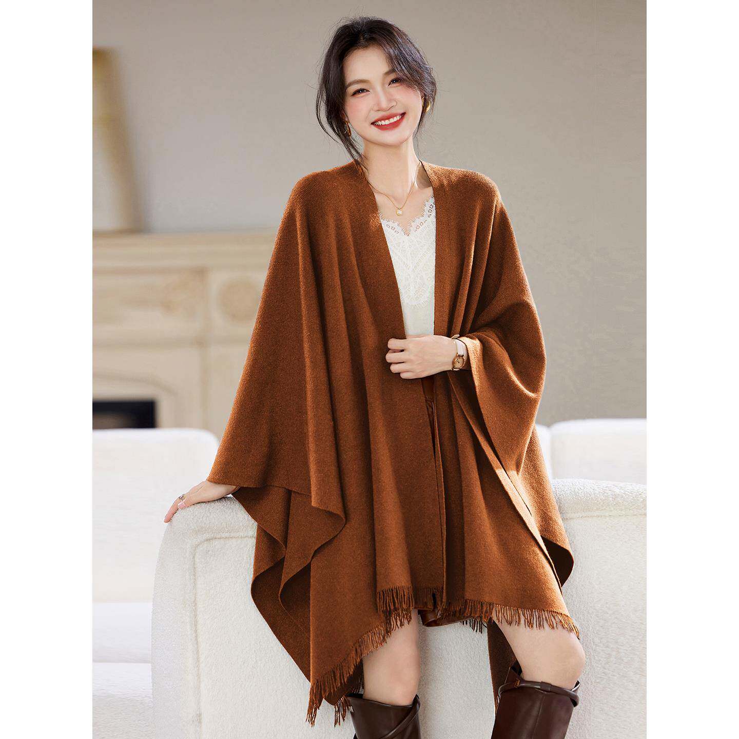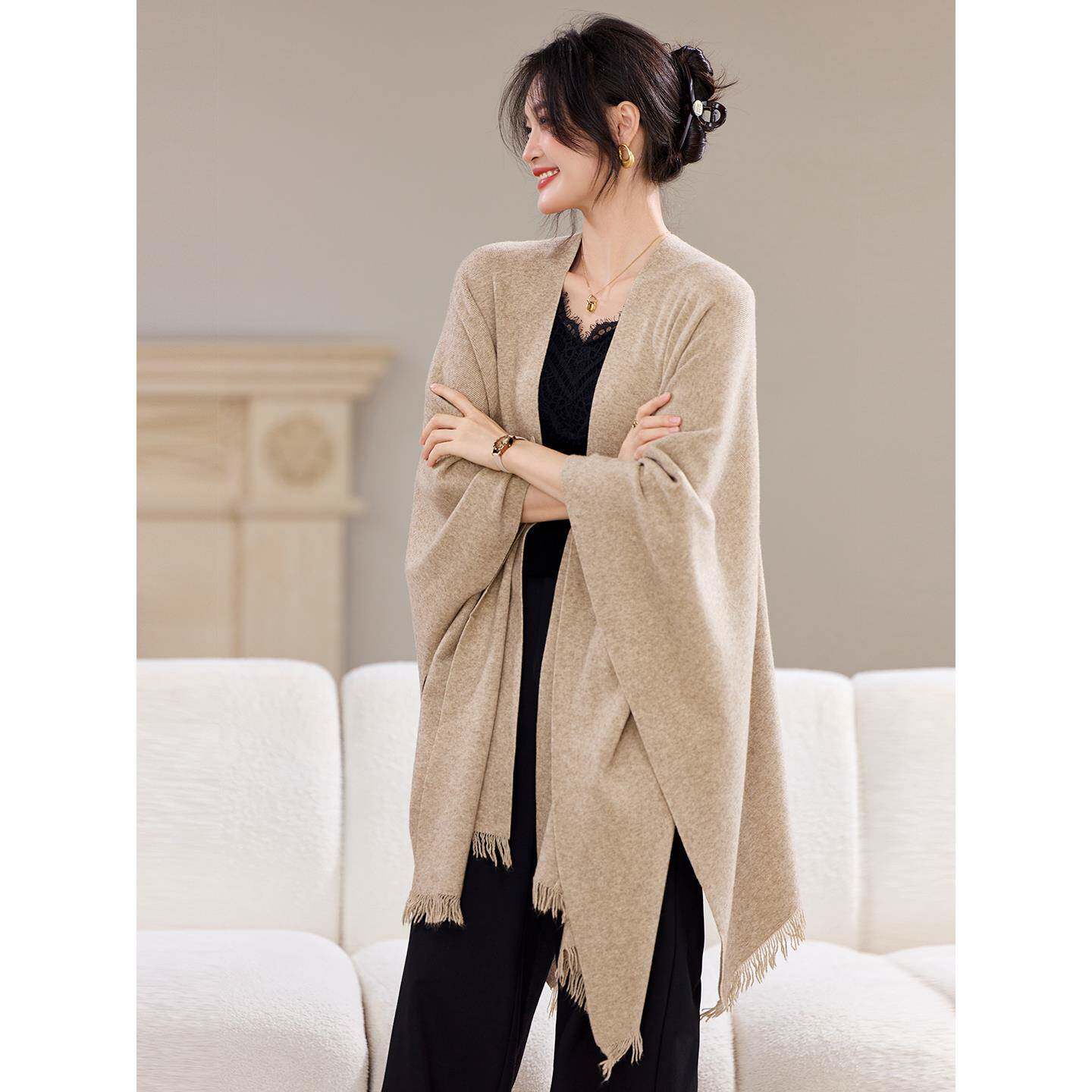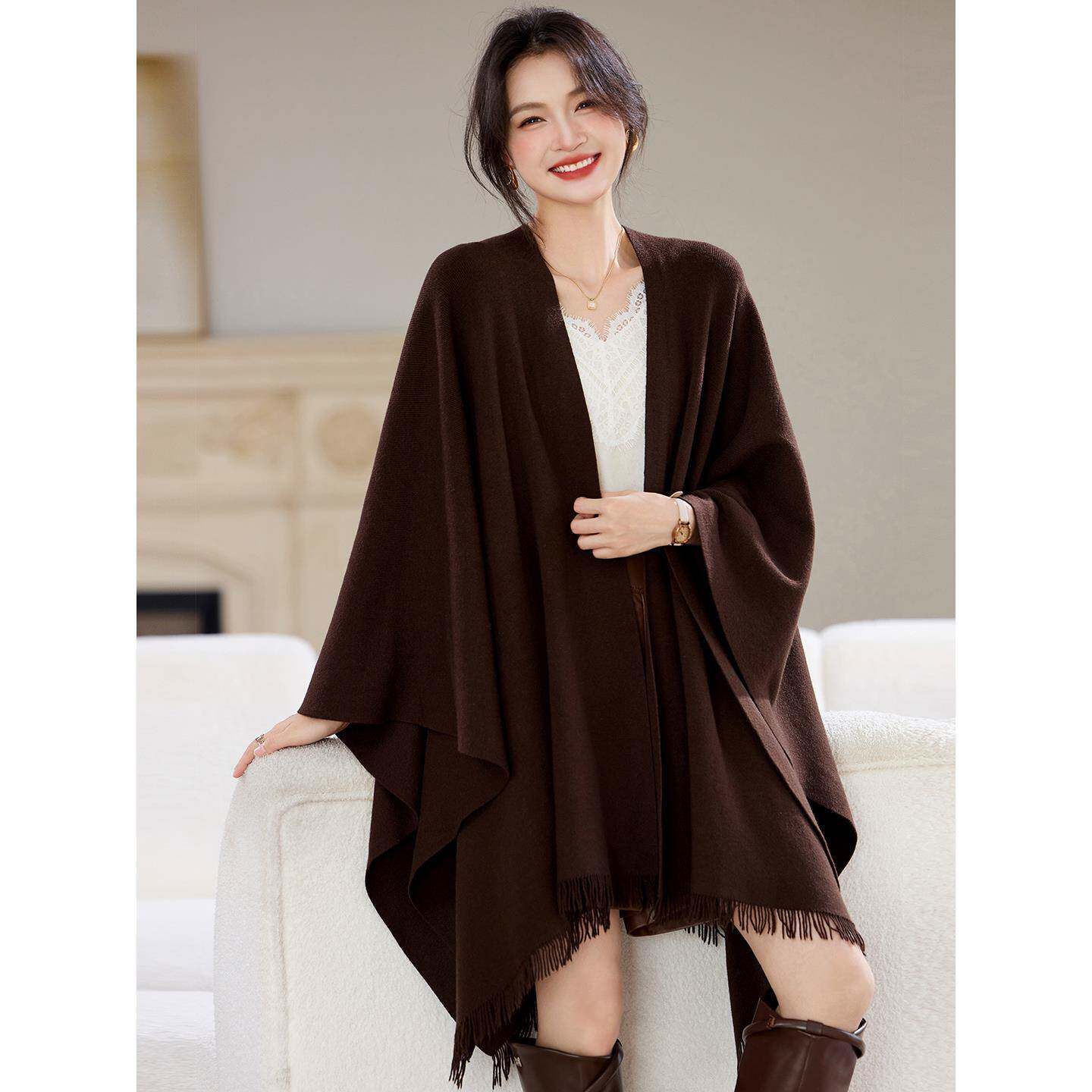 小香风针织大码宽松外套女秋冬季新款洋气中长款外搭加厚披肩开衫