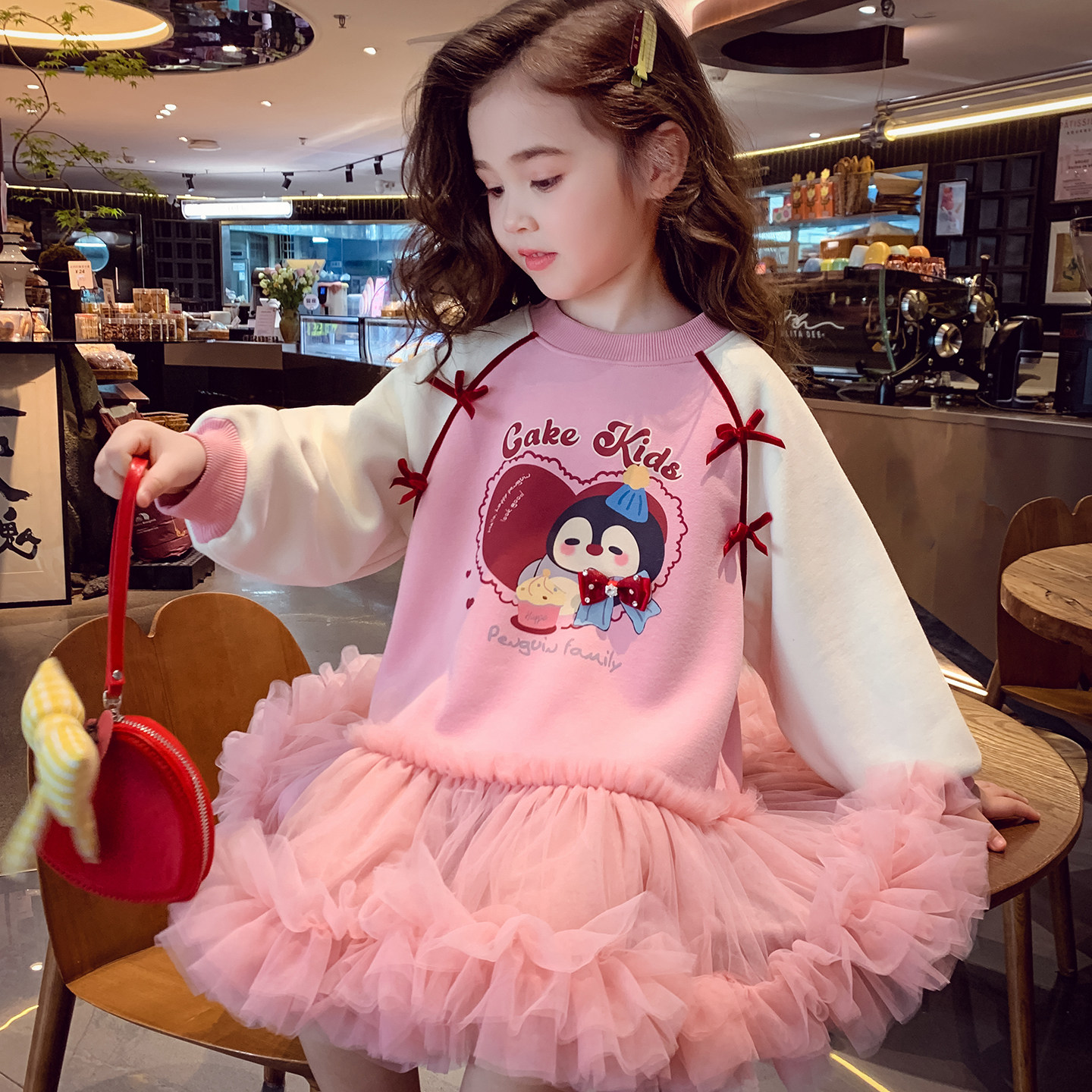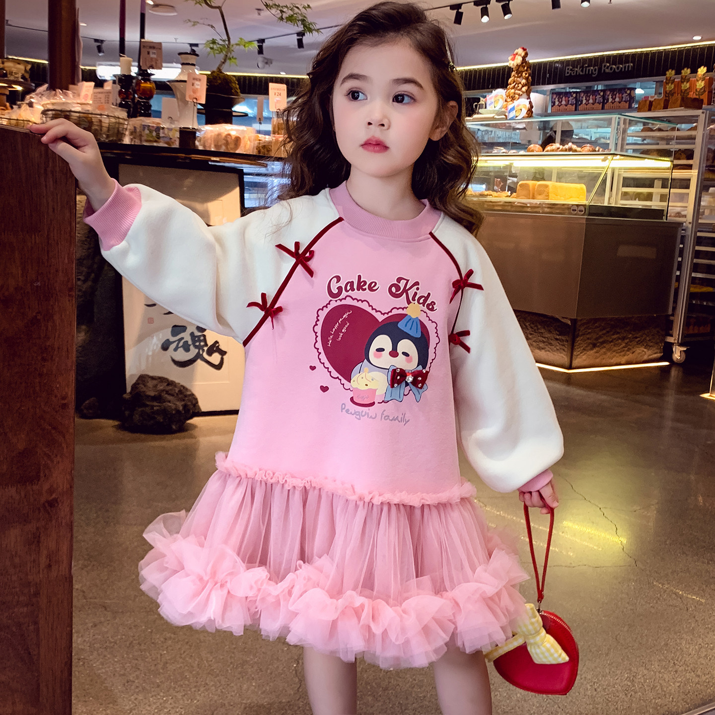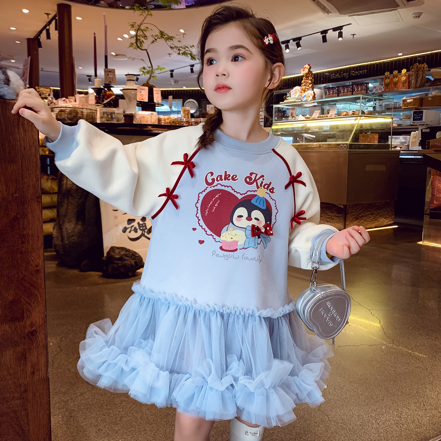 米米哈罗女童加绒连衣裙冬装2025新款儿童韩版宽松卫衣裙女孩纱裙