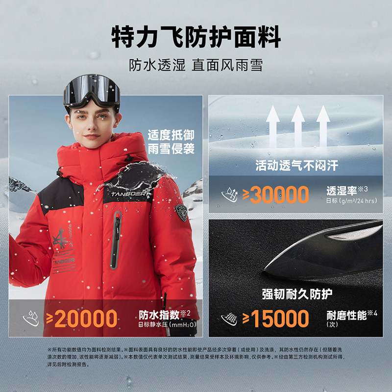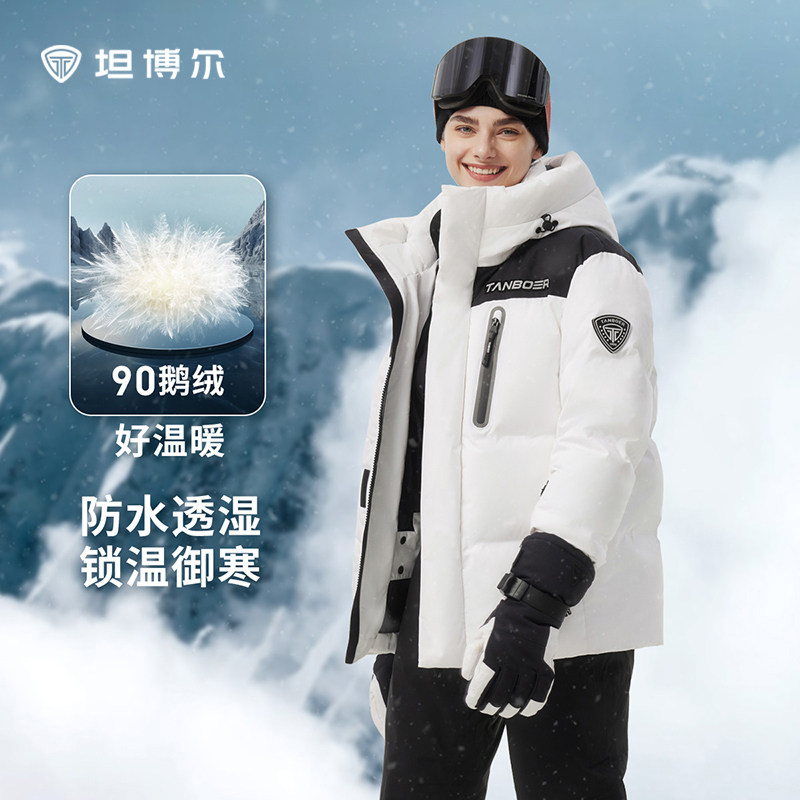 坦博尔滑雪服冬季男女款连帽短款鹅绒羽绒服时尚运动户外保暖外套