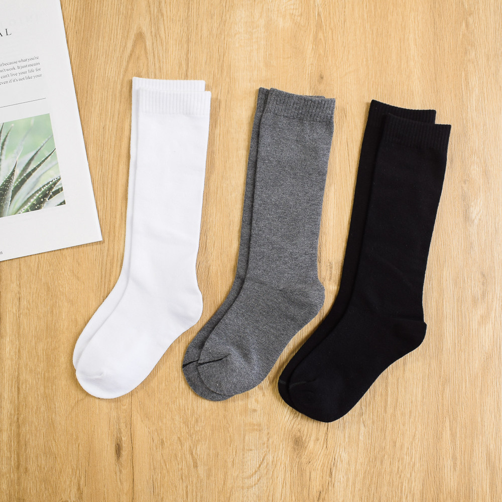 春秋款女童灰色长筒袜纯棉儿童白色高筒袜及膝黑色男童足球礼服袜