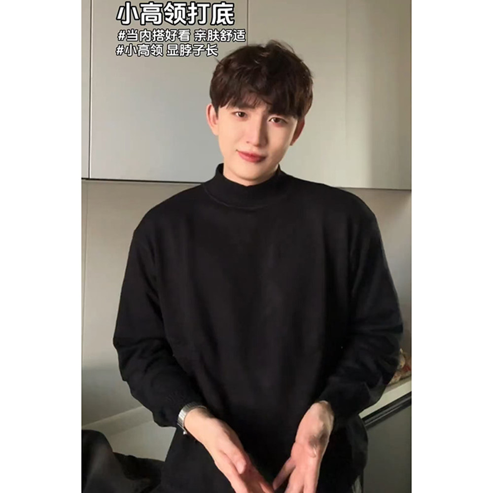 纯黑色痞帅半高领毛衣男款冬季高级感cleanfit保暖修身内搭针织衫