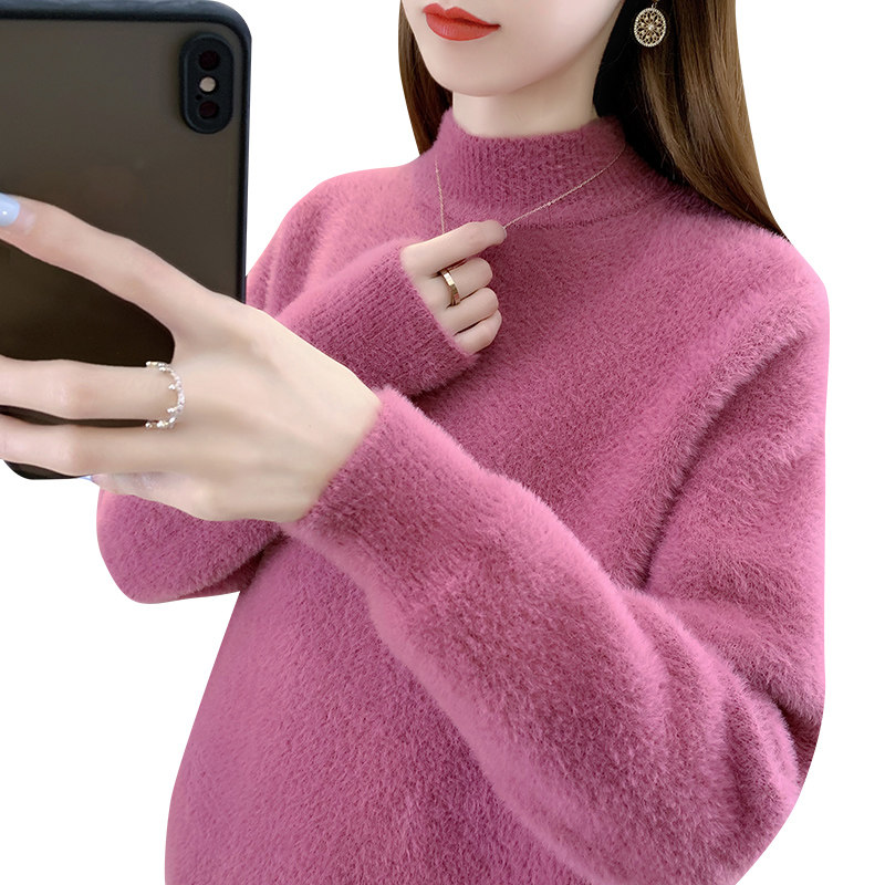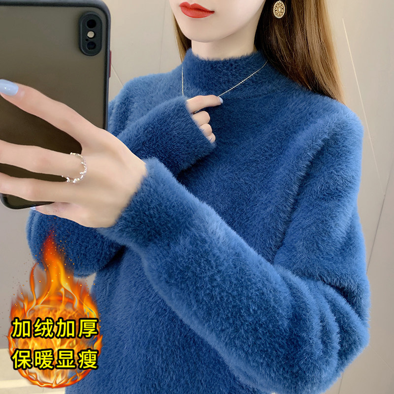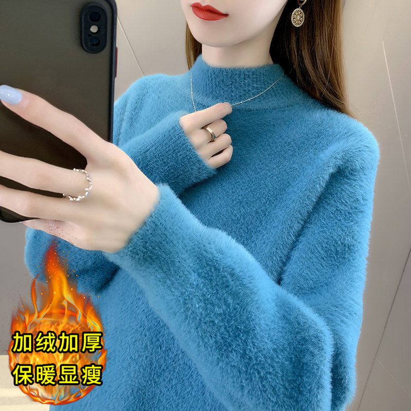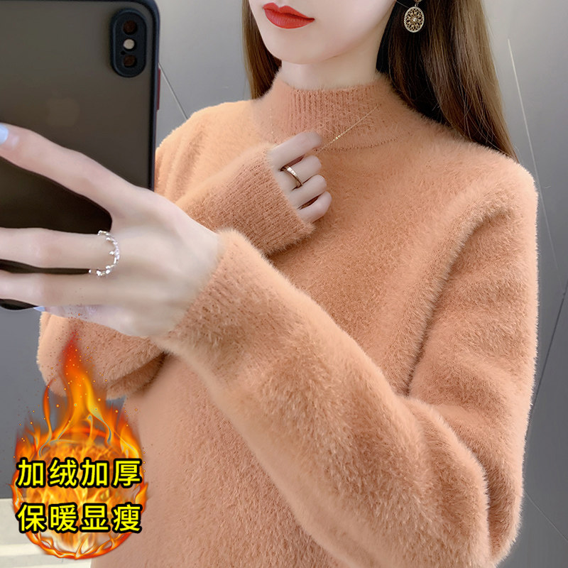 毛衣女款2024新款冬季仿水貂绒内搭上衣女加绒加厚半高领打底衫女