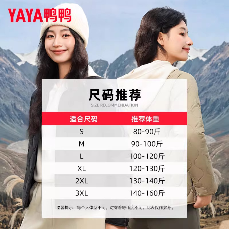 YAYA鸭鸭2025年新款轻薄羽绒服女款保暖内胆圆领V领内搭轻便外套