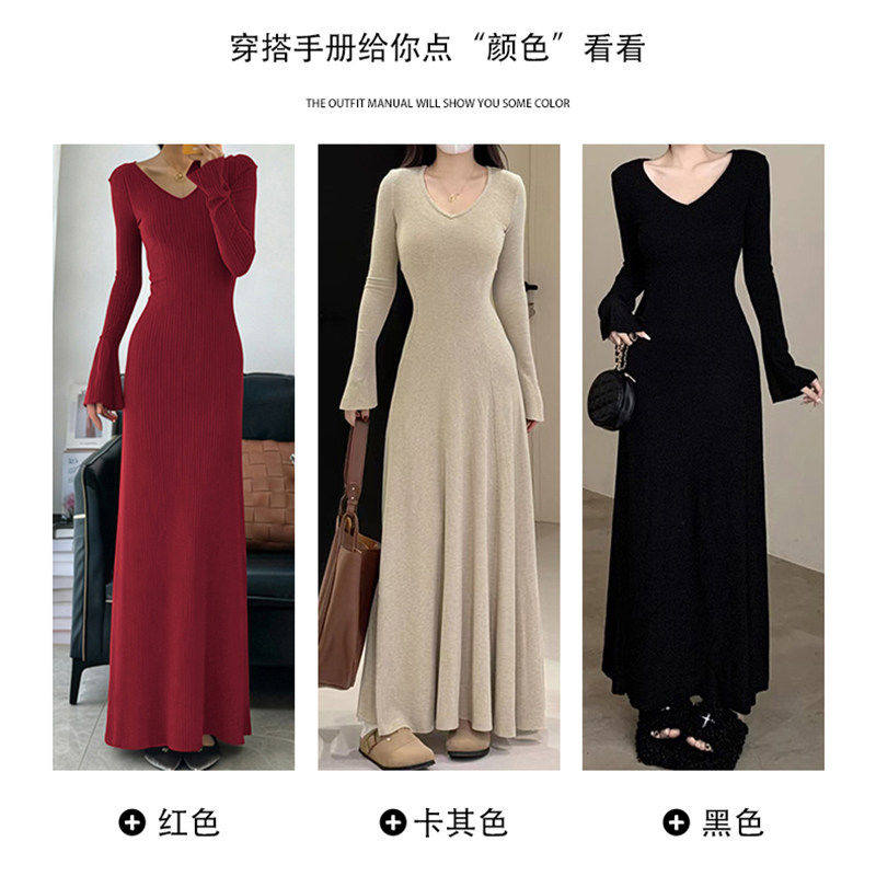 黑色长裙大衣内搭连衣裙女秋冬季打底a字针织轻奢小众不撞款裙子