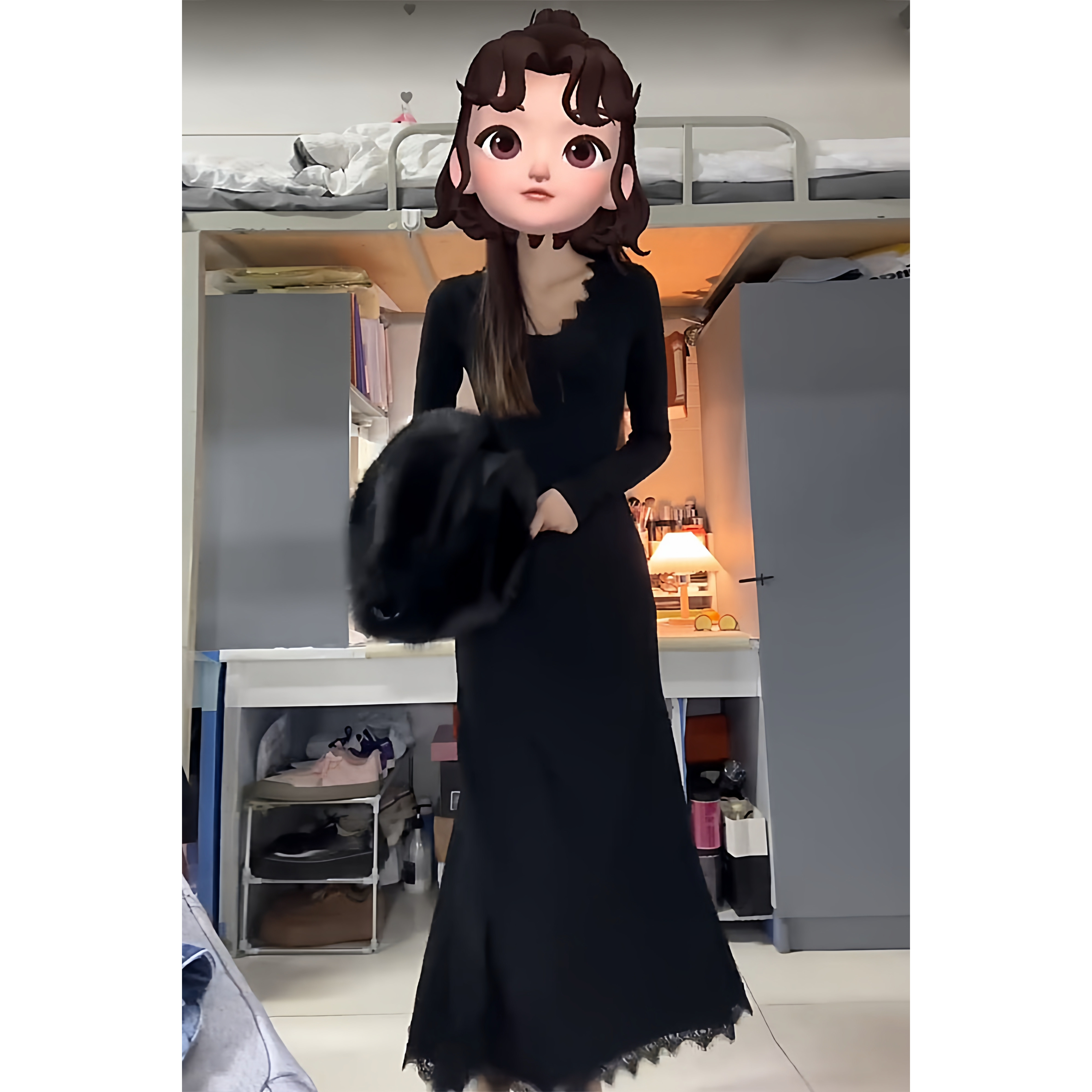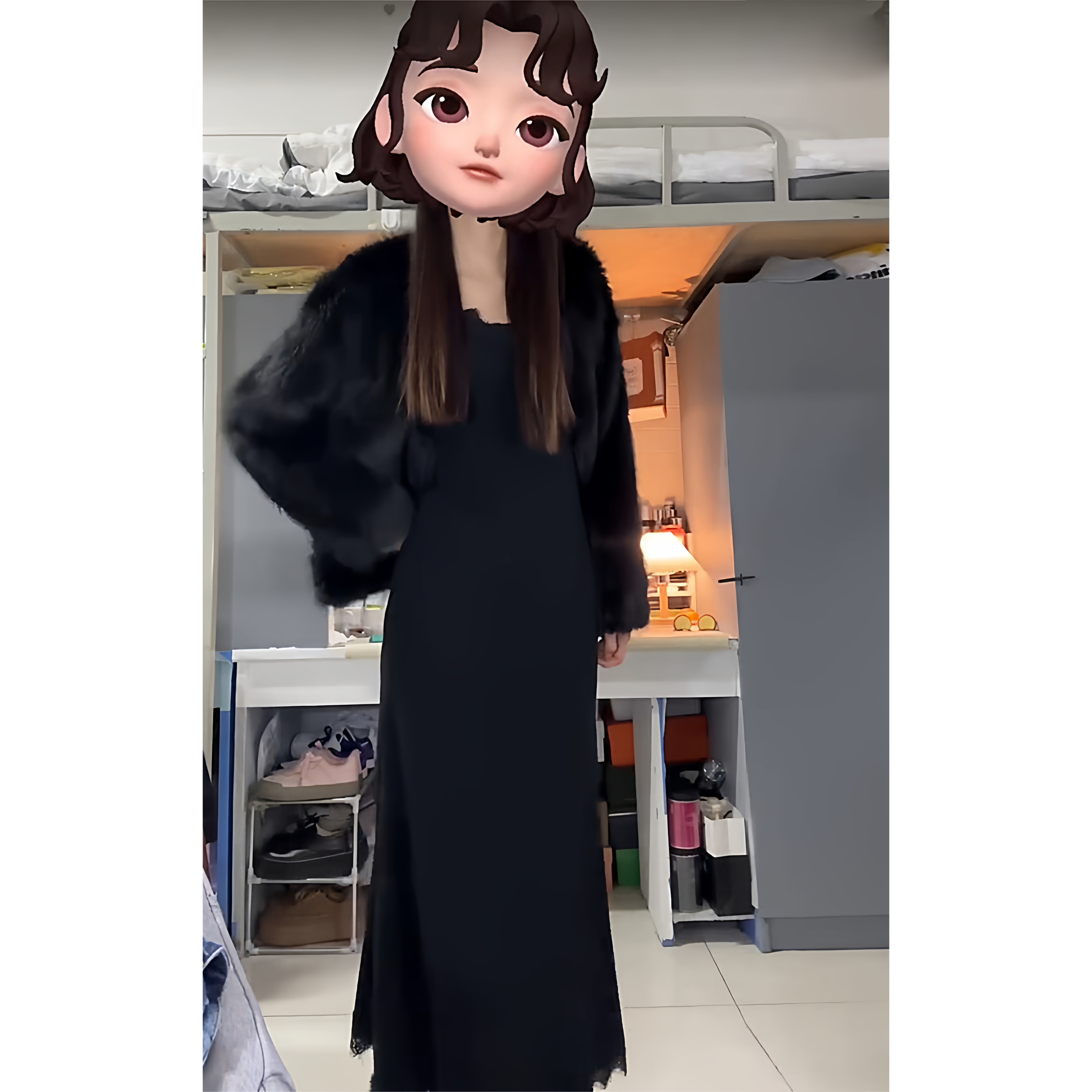 黑色长袖连衣裙子女早秋季2025新款高级感小个子大衣内搭打底长裙