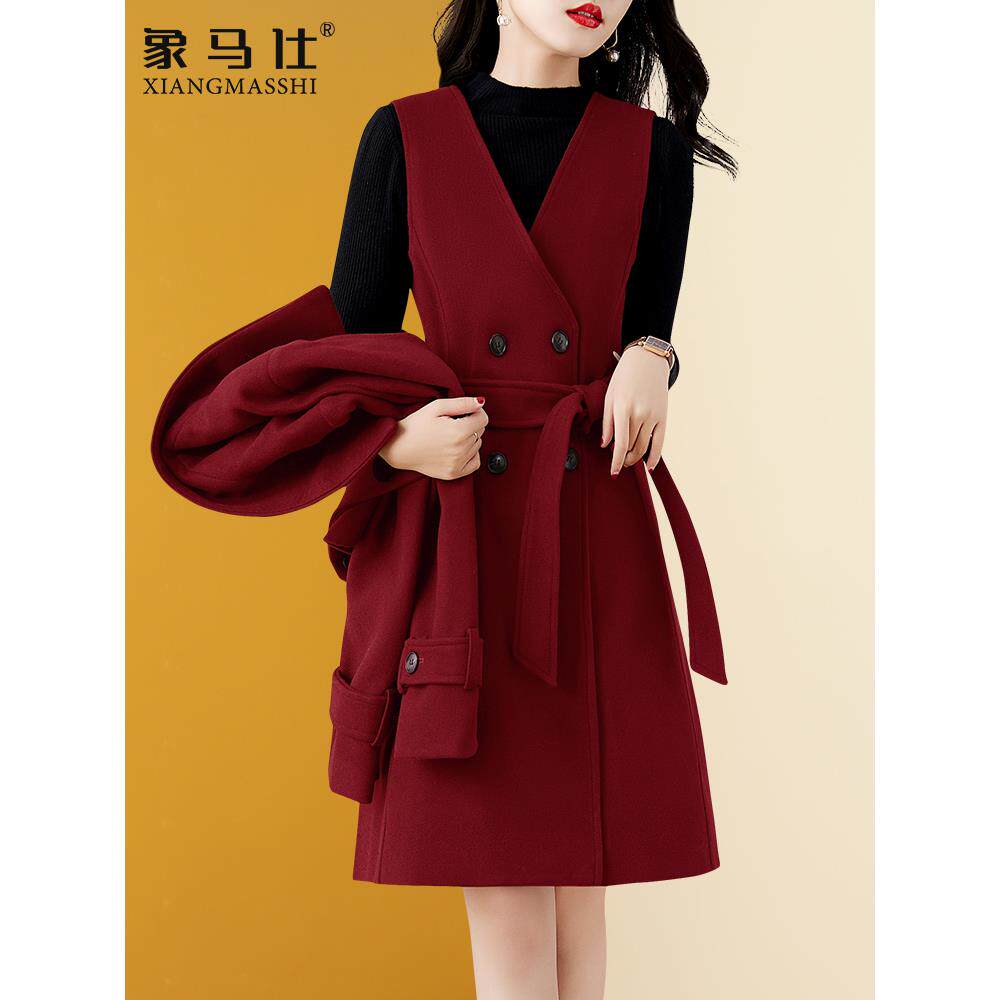 高端气质连衣裙子女装2025新款秋冬季小个子妈妈洋气时尚两件套装