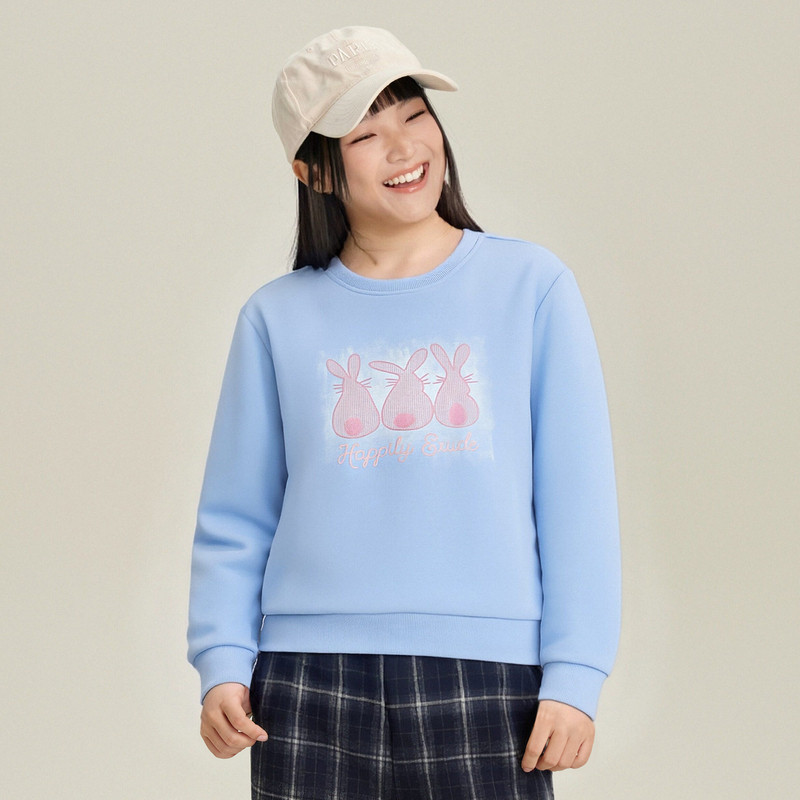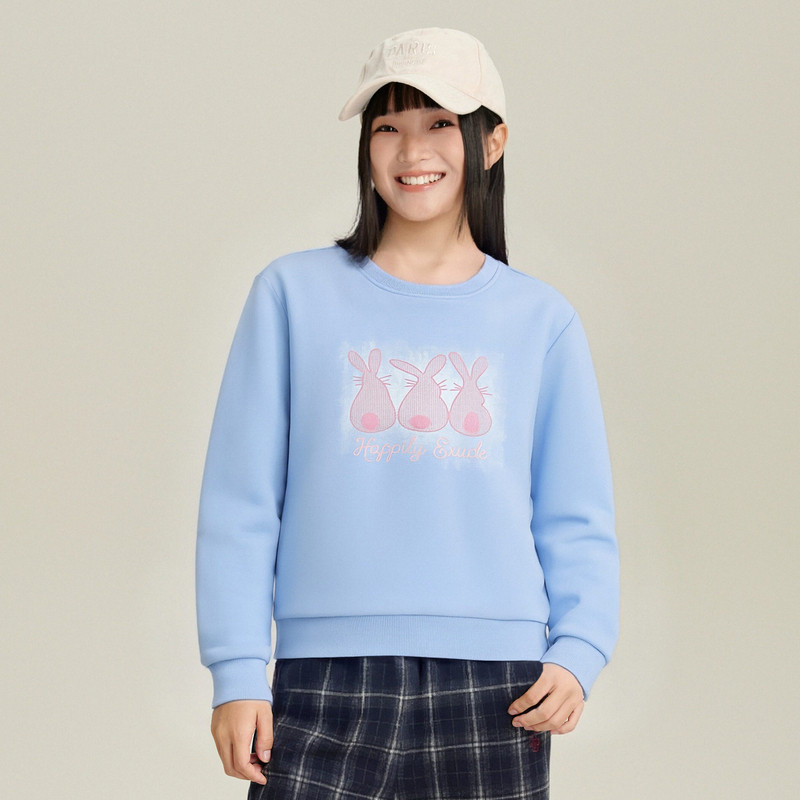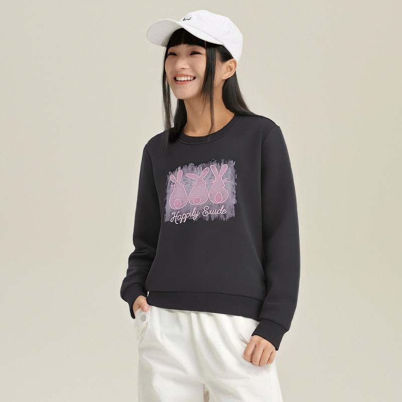 快鱼卫衣女款2026春新款时尚印花圆领百搭显瘦打底衫长袖外穿上衣