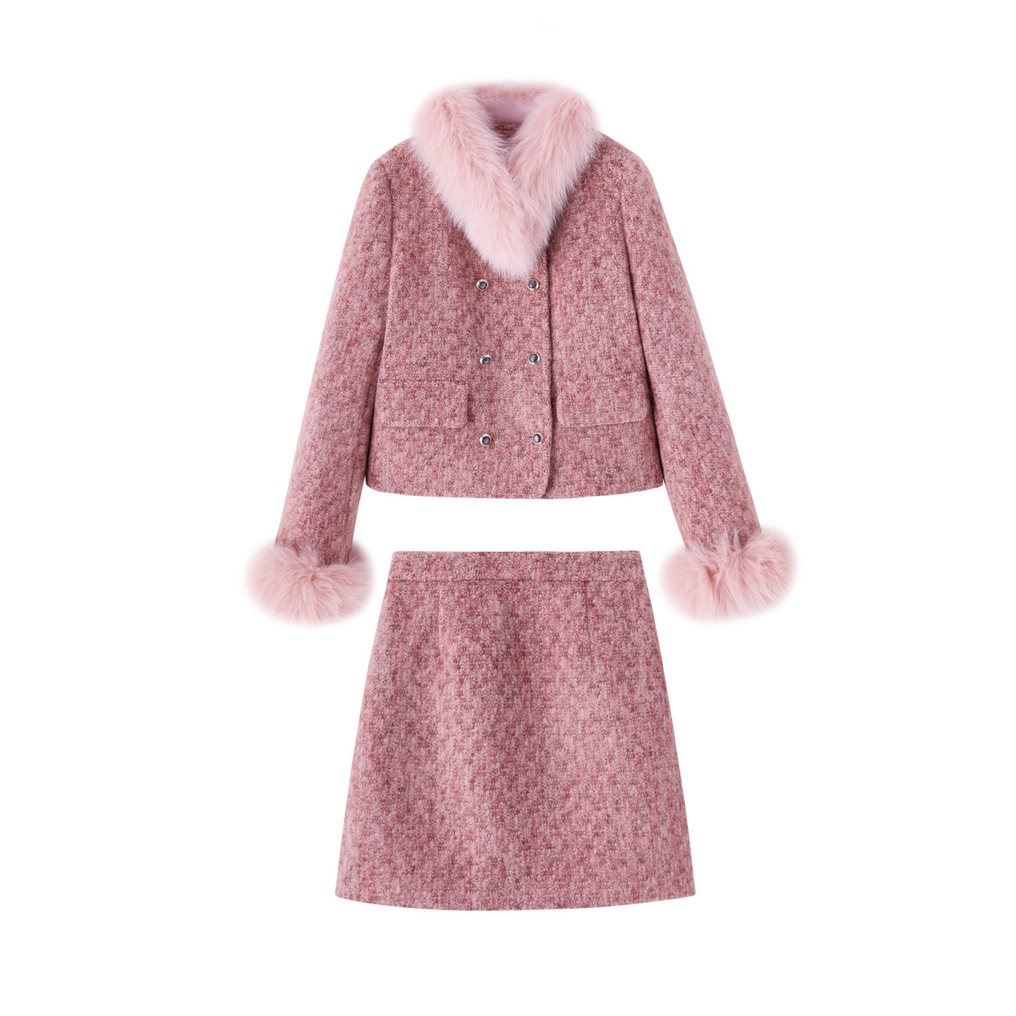 小香风套装两件套2025冬装新款小个子90绒羽绒外套半身短裙狐狸毛