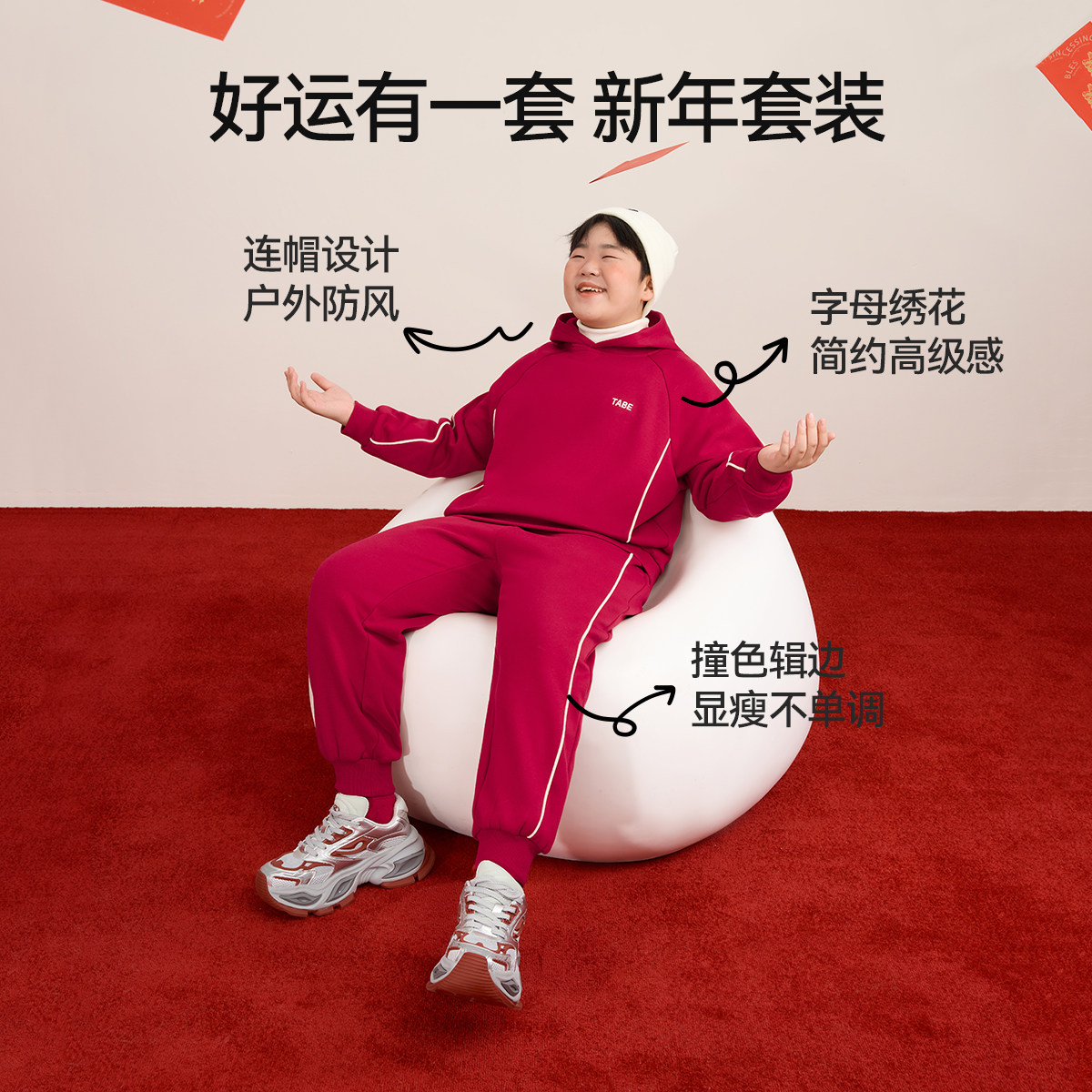 小猪托尼胖童装男童秋装加绒套装红色本命年卫衣裤子两件套青少年