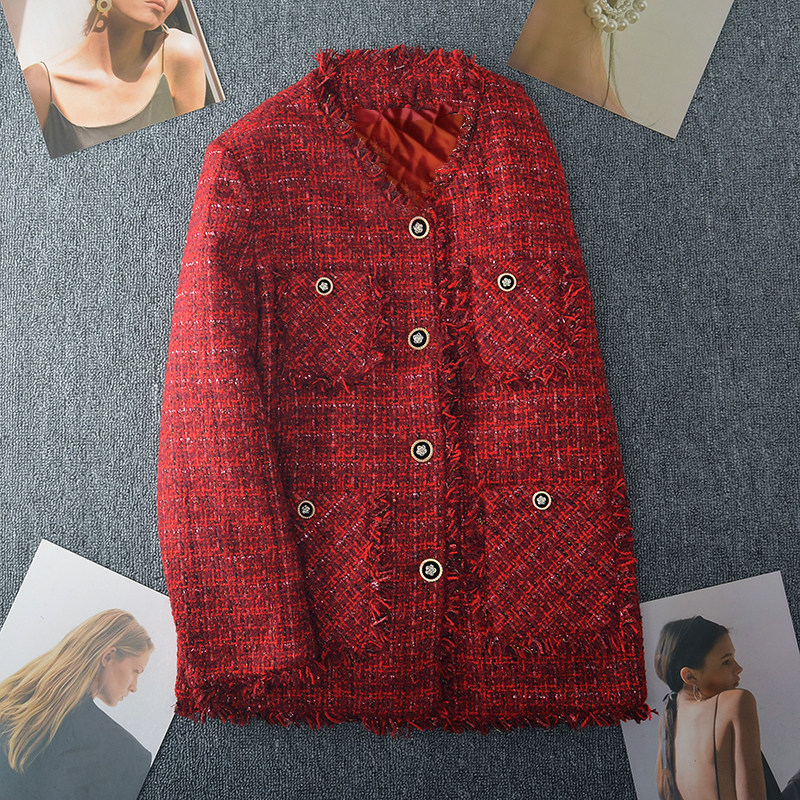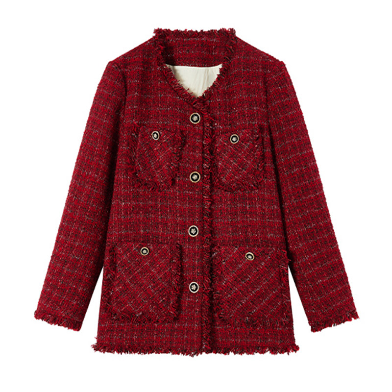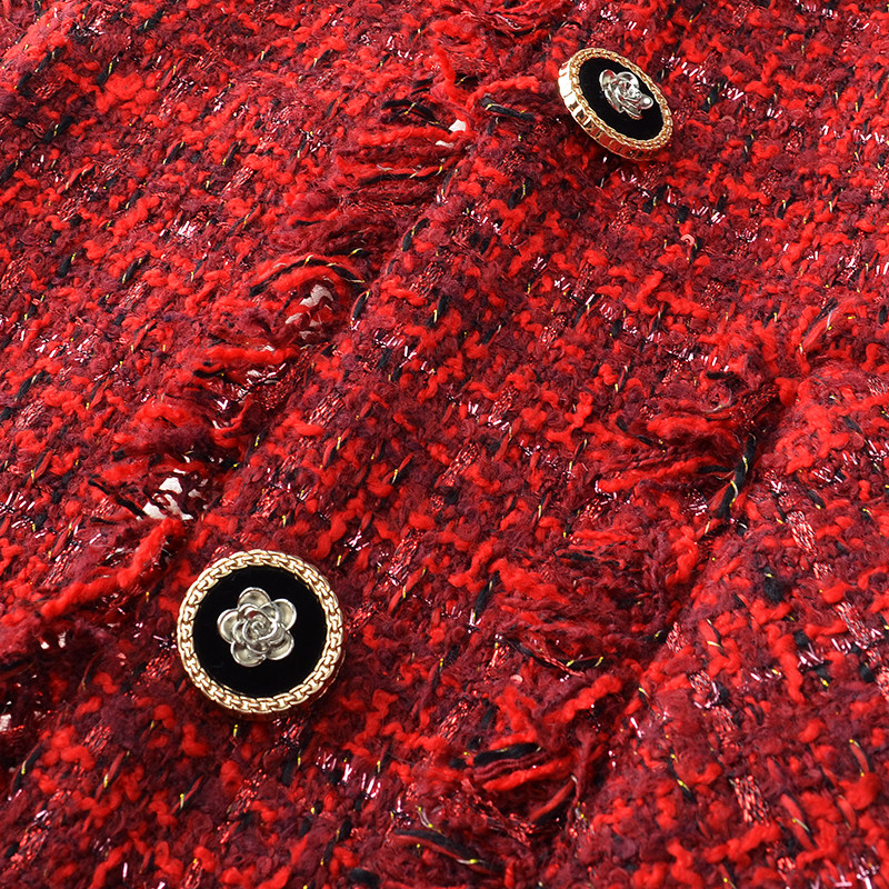 秋冬新款大码小香风外套女胖mm红色粗花呢高级感上衣200斤加厚