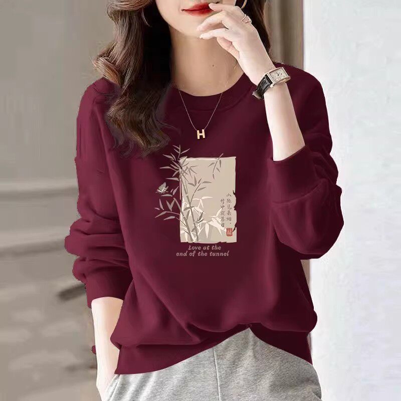 山东即墨纯棉卫衣女2025年秋冬新款国风印花时尚内搭薄款上衣外套