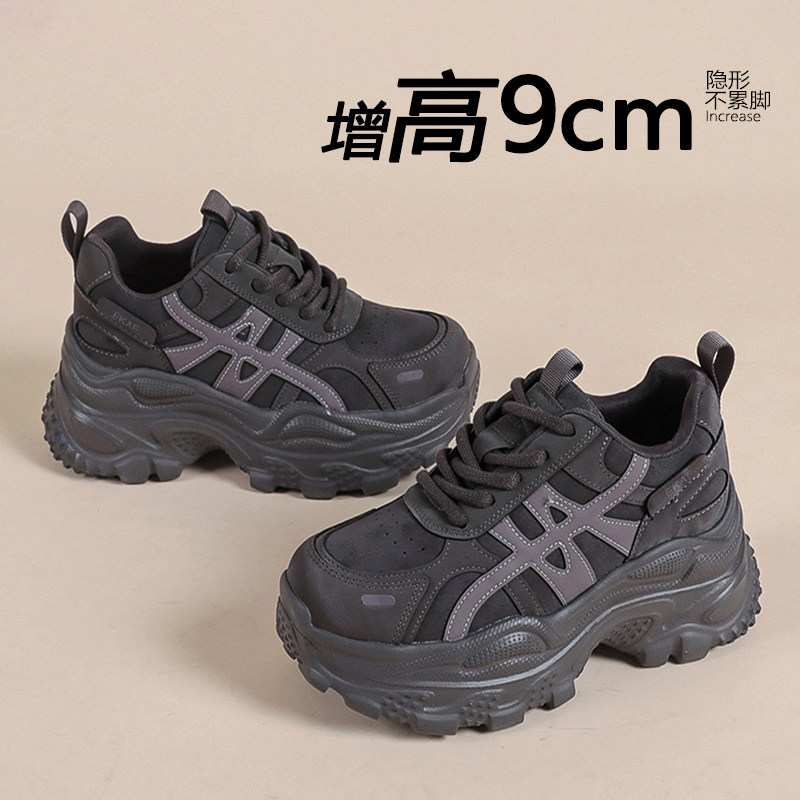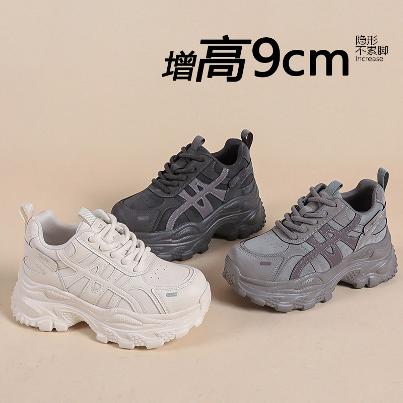 9cm内增高老爹鞋女款2026新款春季百搭轻便厚底休闲鞋松糕运动鞋