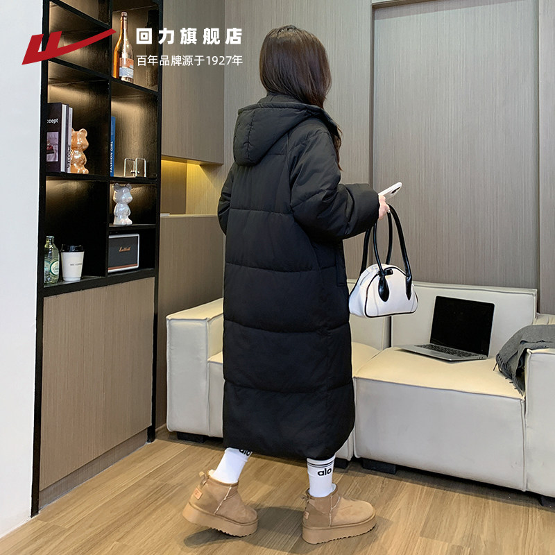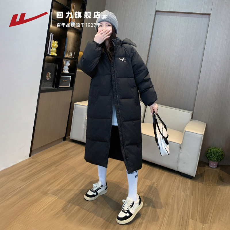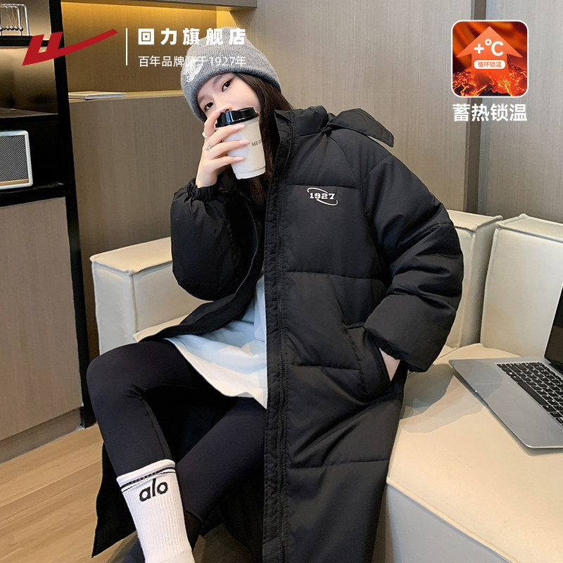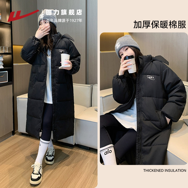 回力棉服女中长款2025冬季新款中戏棉袄外套连帽加厚过膝羽绒棉衣