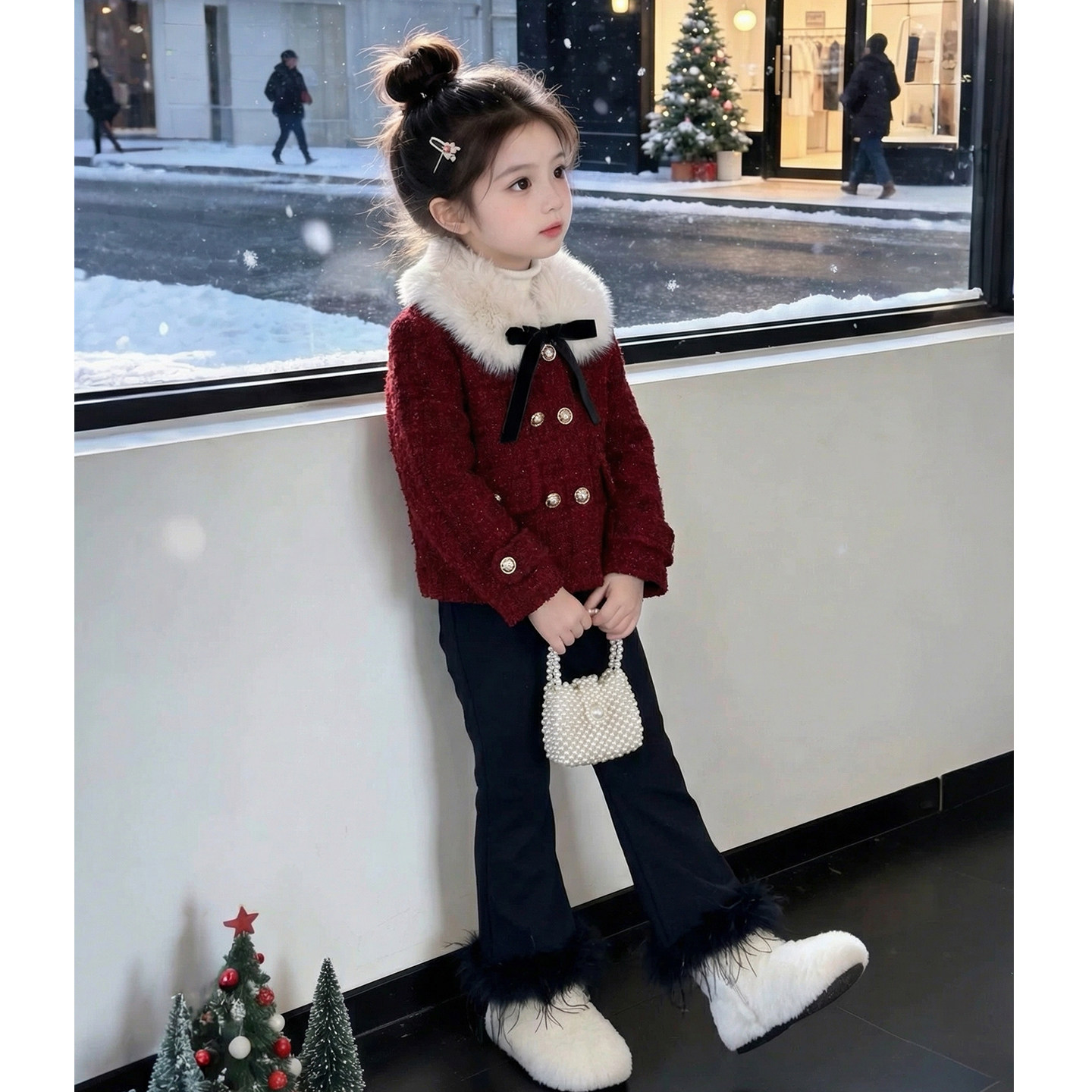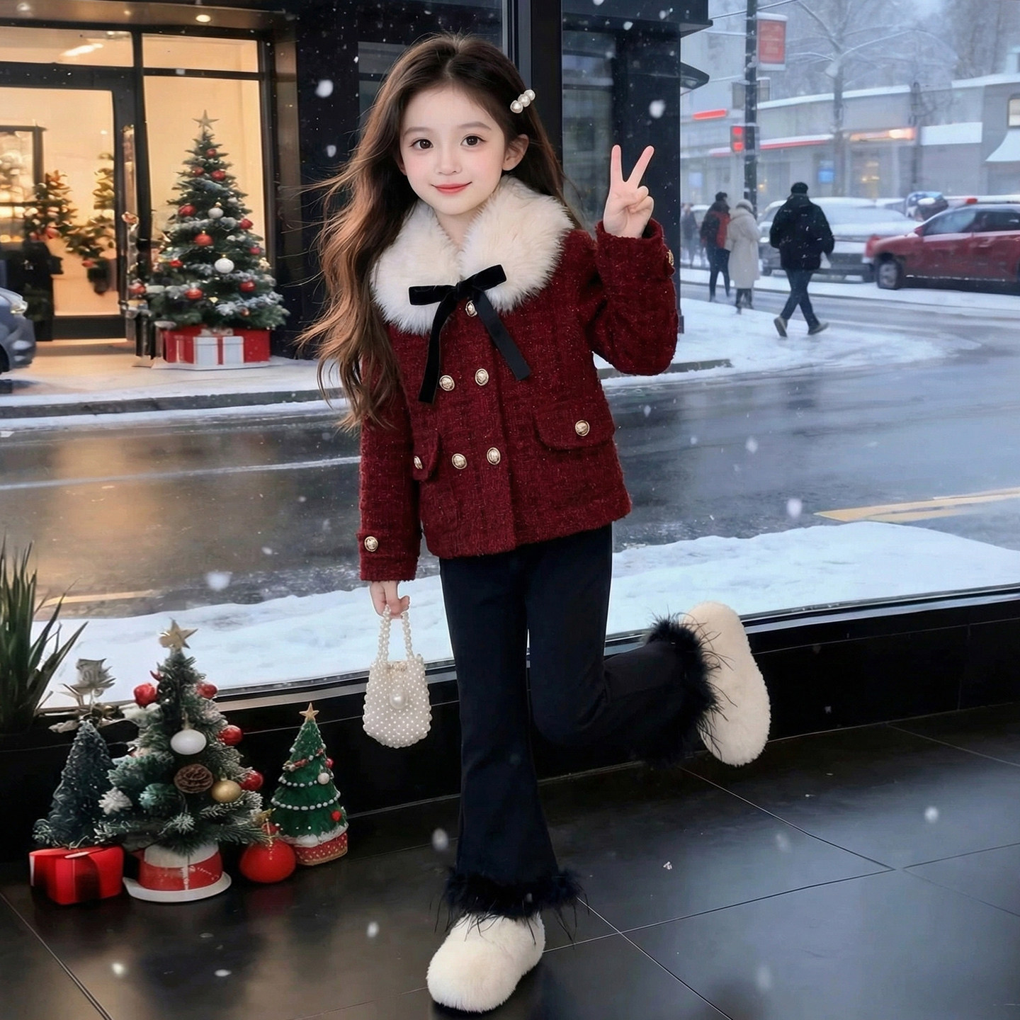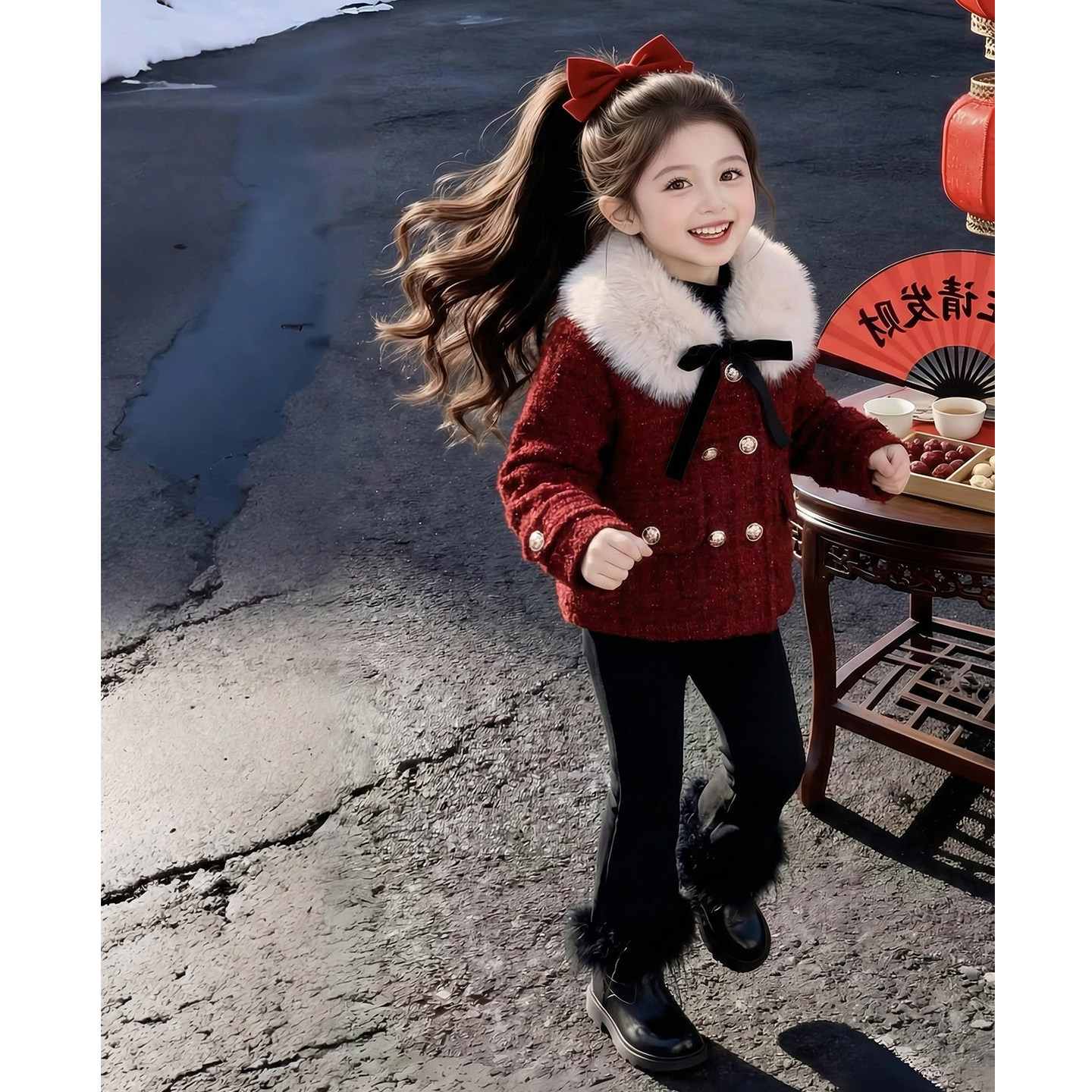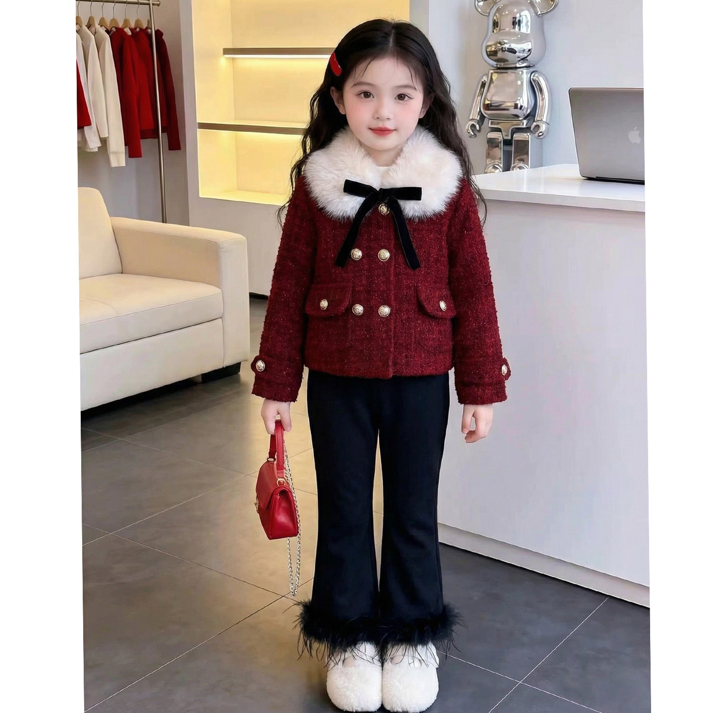 女童套装冬装2026新款儿童洋气时髦高级爆款红色女孩新年装小香风