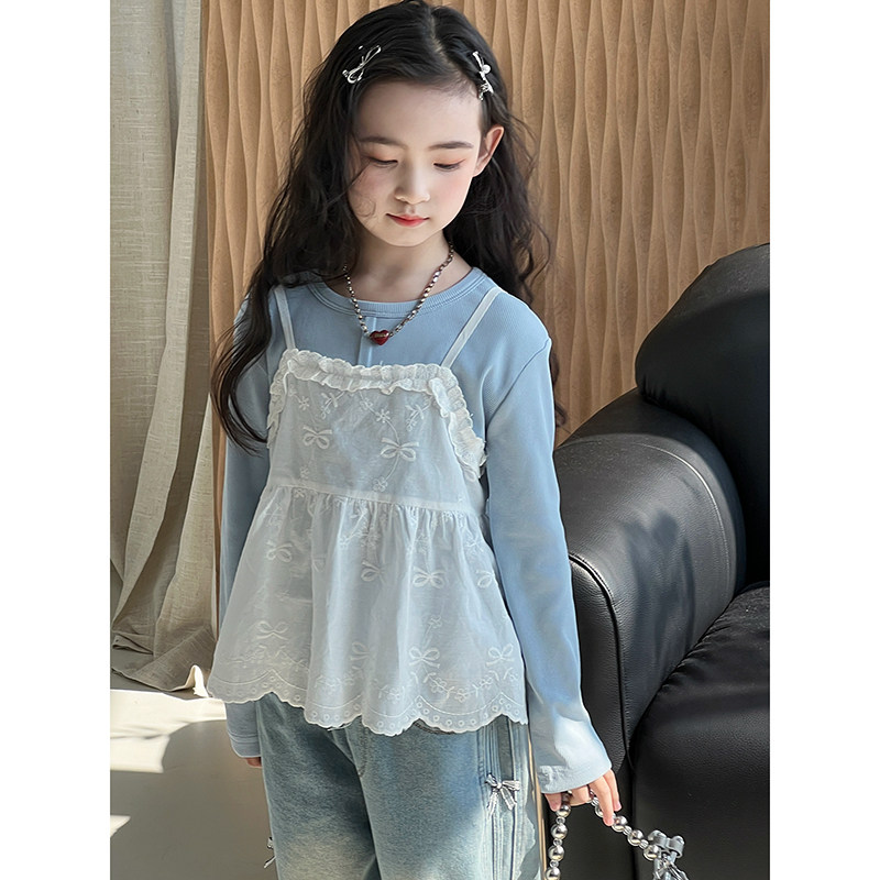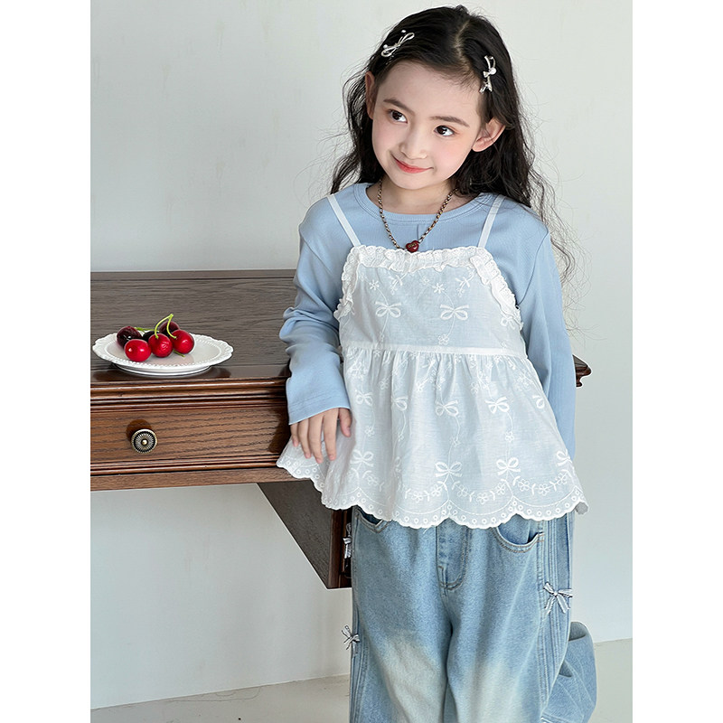 女童春款2026春季新款套装儿童吊带背心蕾丝中童韩版洋气百搭上衣