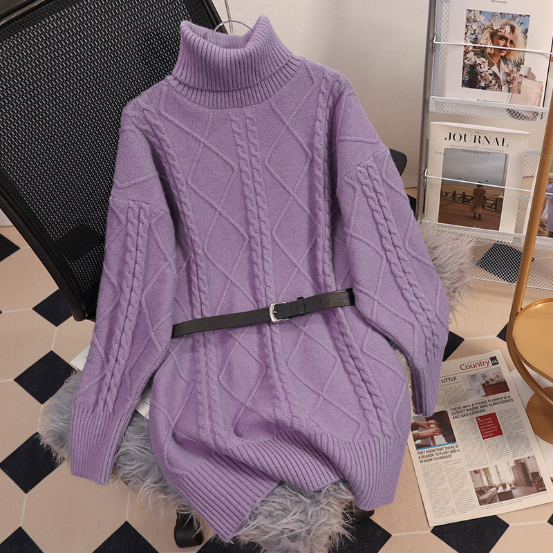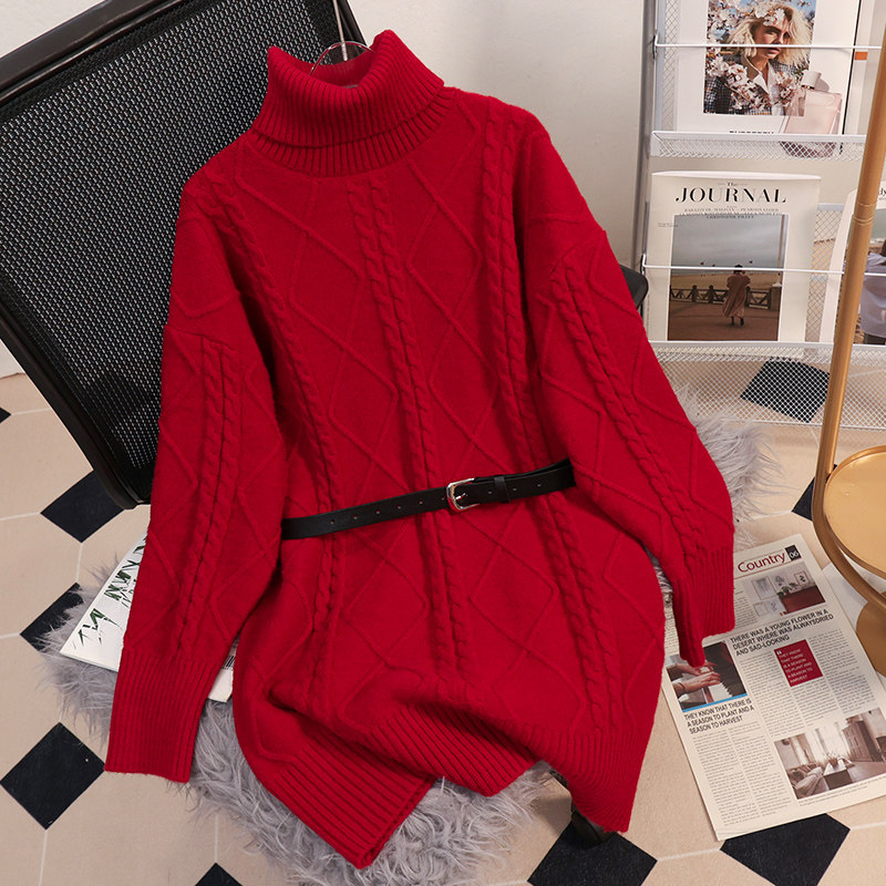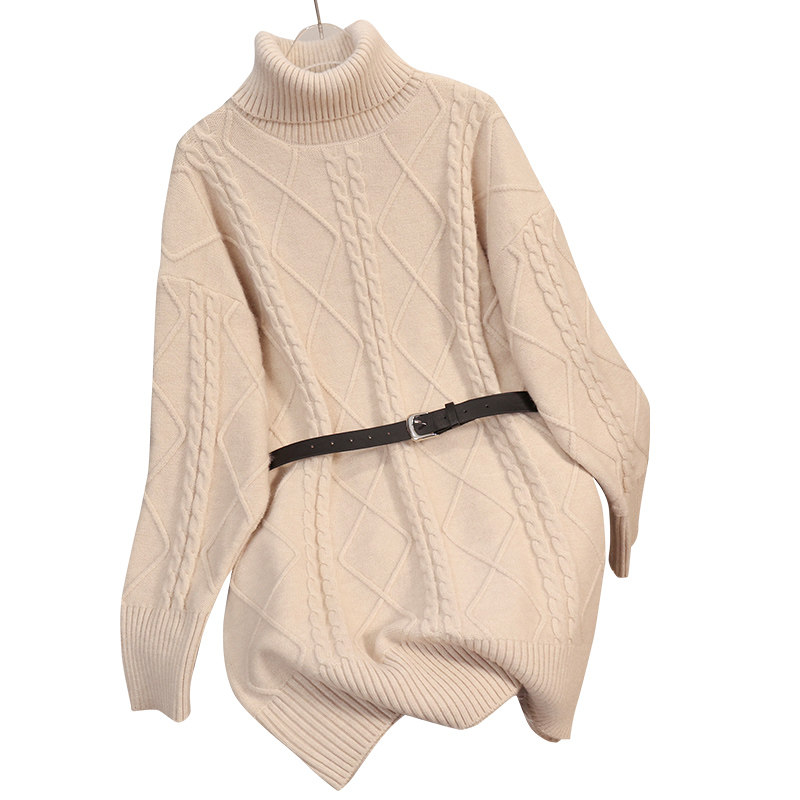 高领毛衣女秋冬收腰显瘦加厚中长款打底衫女白色内搭针织连衣裙女
