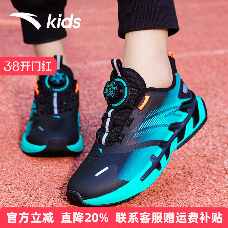 安踏童鞋儿童运动鞋网面男童跑步鞋弓速2026春季防水大童纽扣鞋子