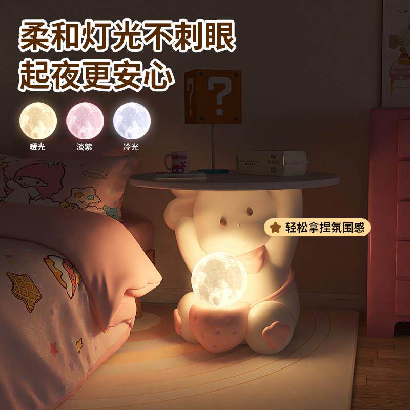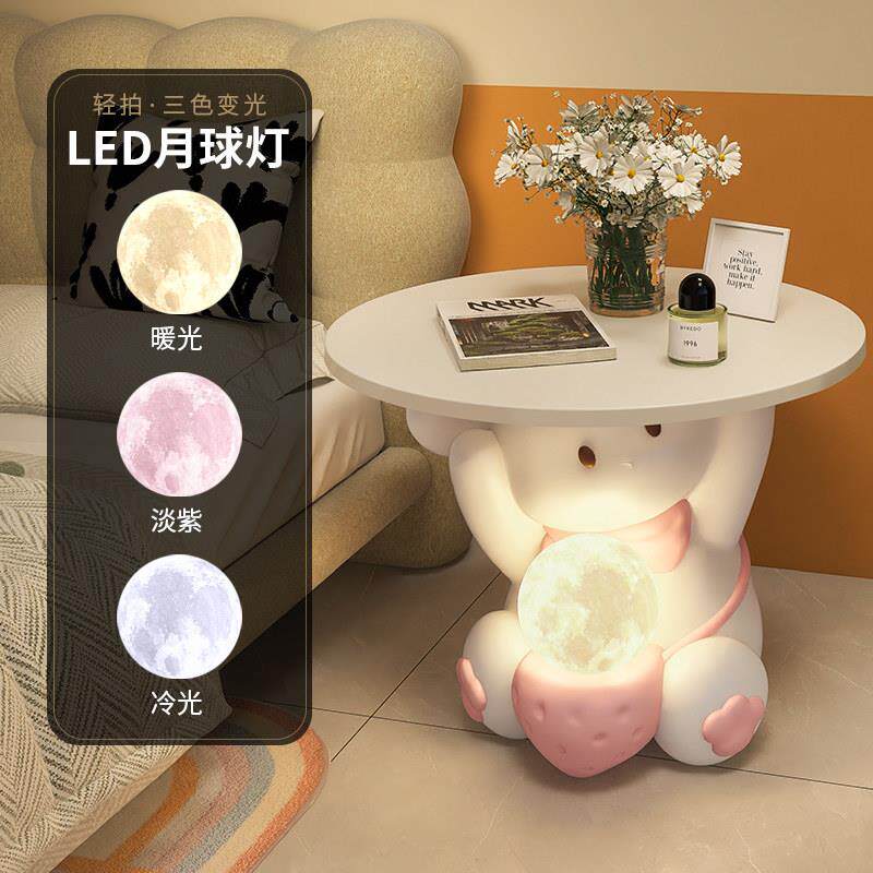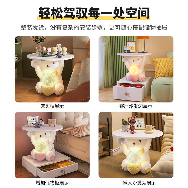 可爱兔子边几客厅卧室床头柜一体灯创意落地摆件电视沙发旁边置物
