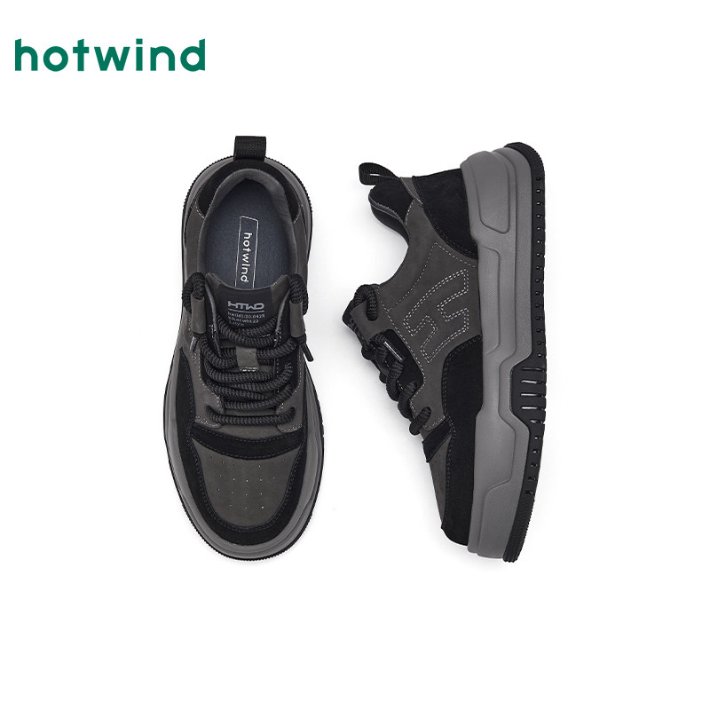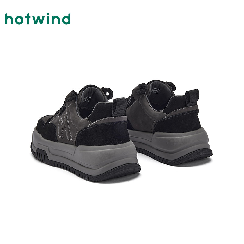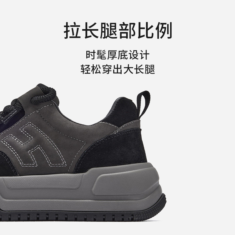 热风男鞋2025年冬季新款增高厚底板鞋黑色百搭休闲鞋男款潮鞋子