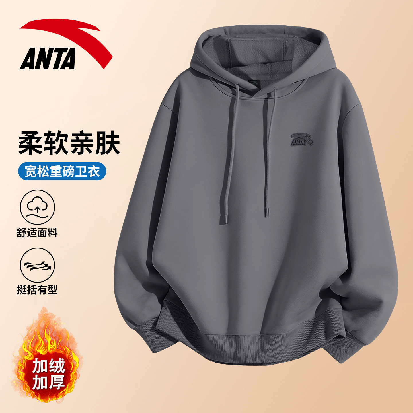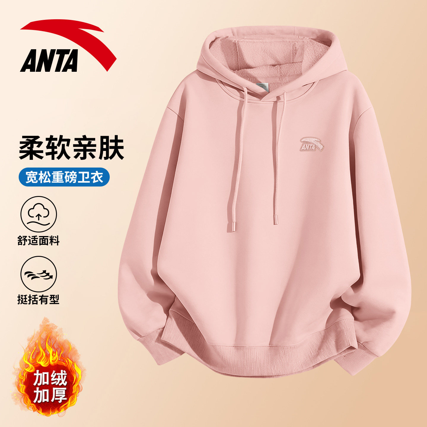 安踏红色卫衣男女款2026春季新款加绒加厚美式休闲帽衫本命年衣服