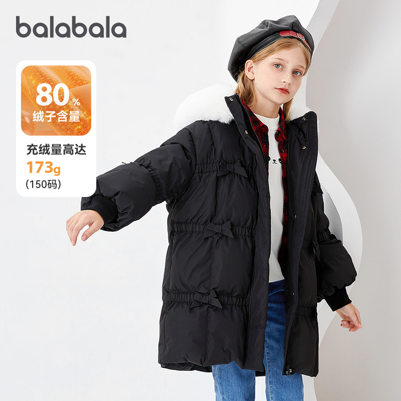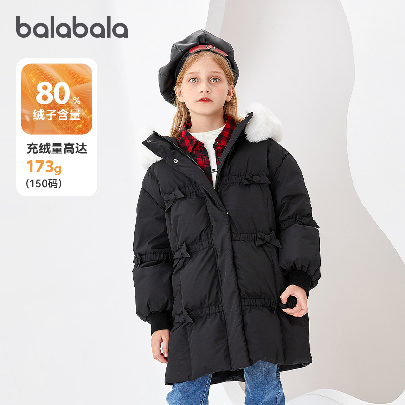 巴拉巴拉女童羽绒服加厚中长款儿童外套大童女孩冬季2026新款童装