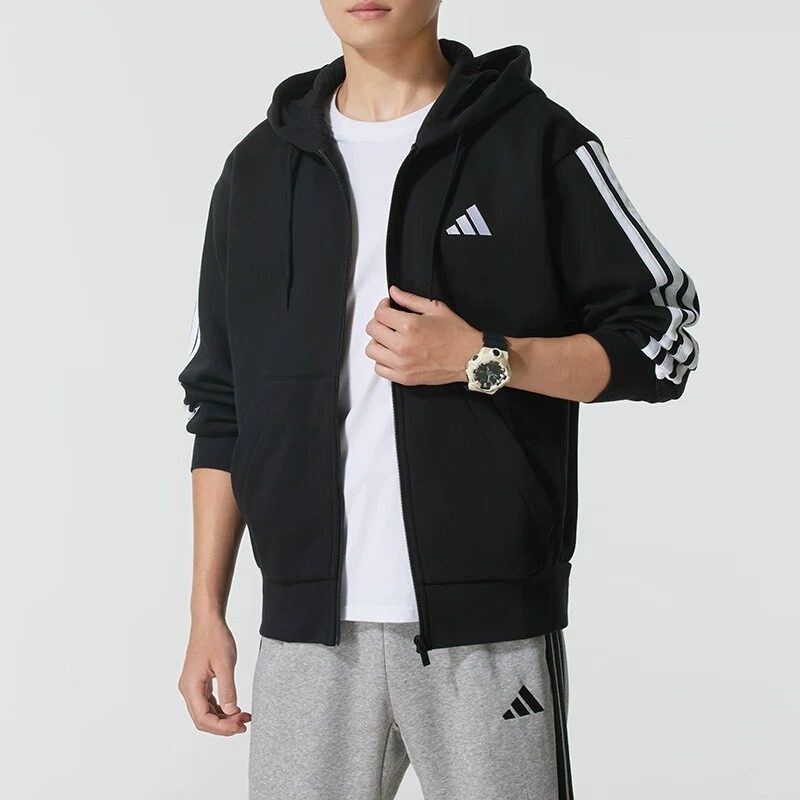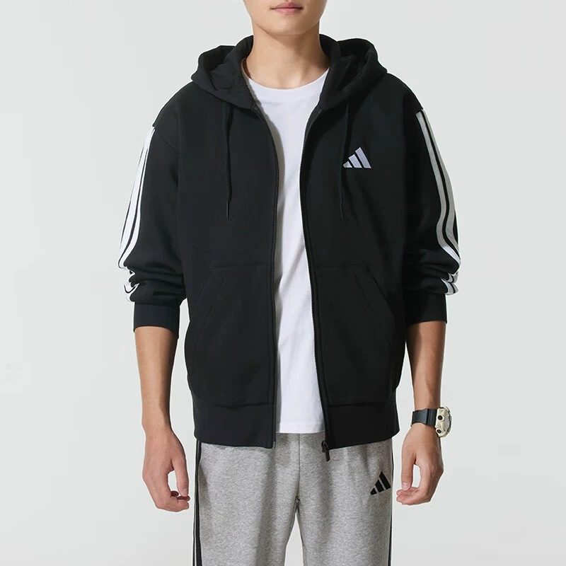 Adidas阿迪达斯秋新款卫衣男士加绒卫衣连帽休闲上衣加厚运动外套