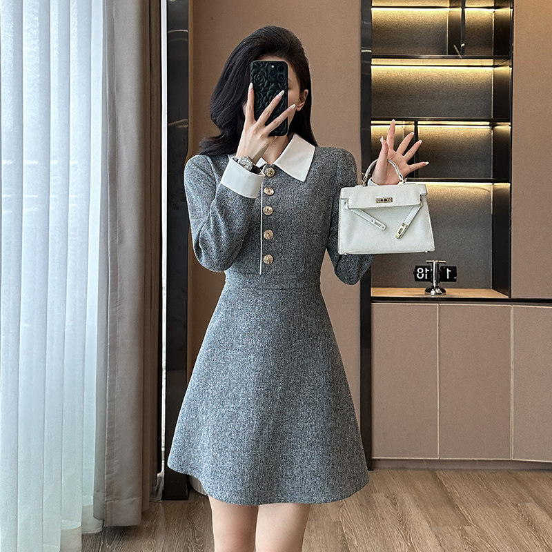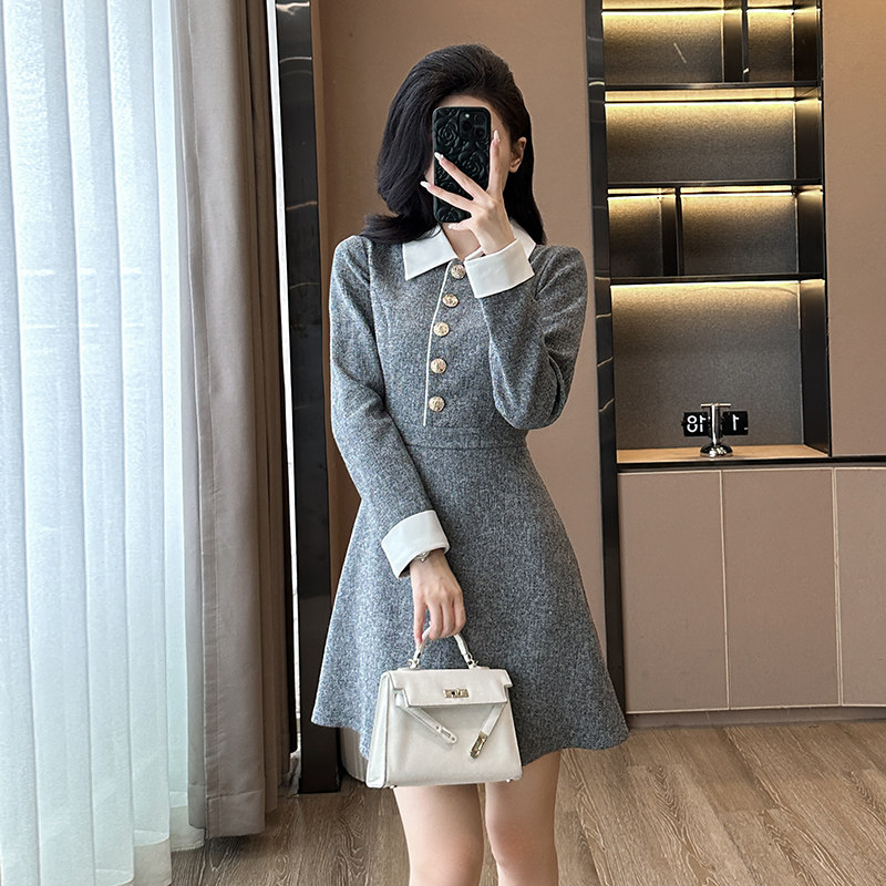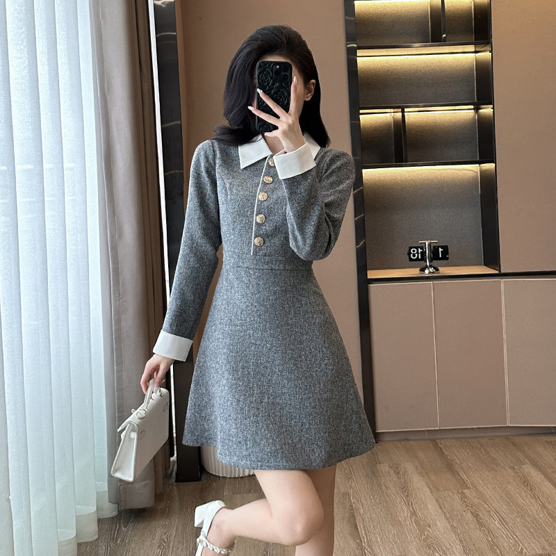 小个子连衣裙女秋冬2024新款季高级感收腰气质小香风打底裙子法式