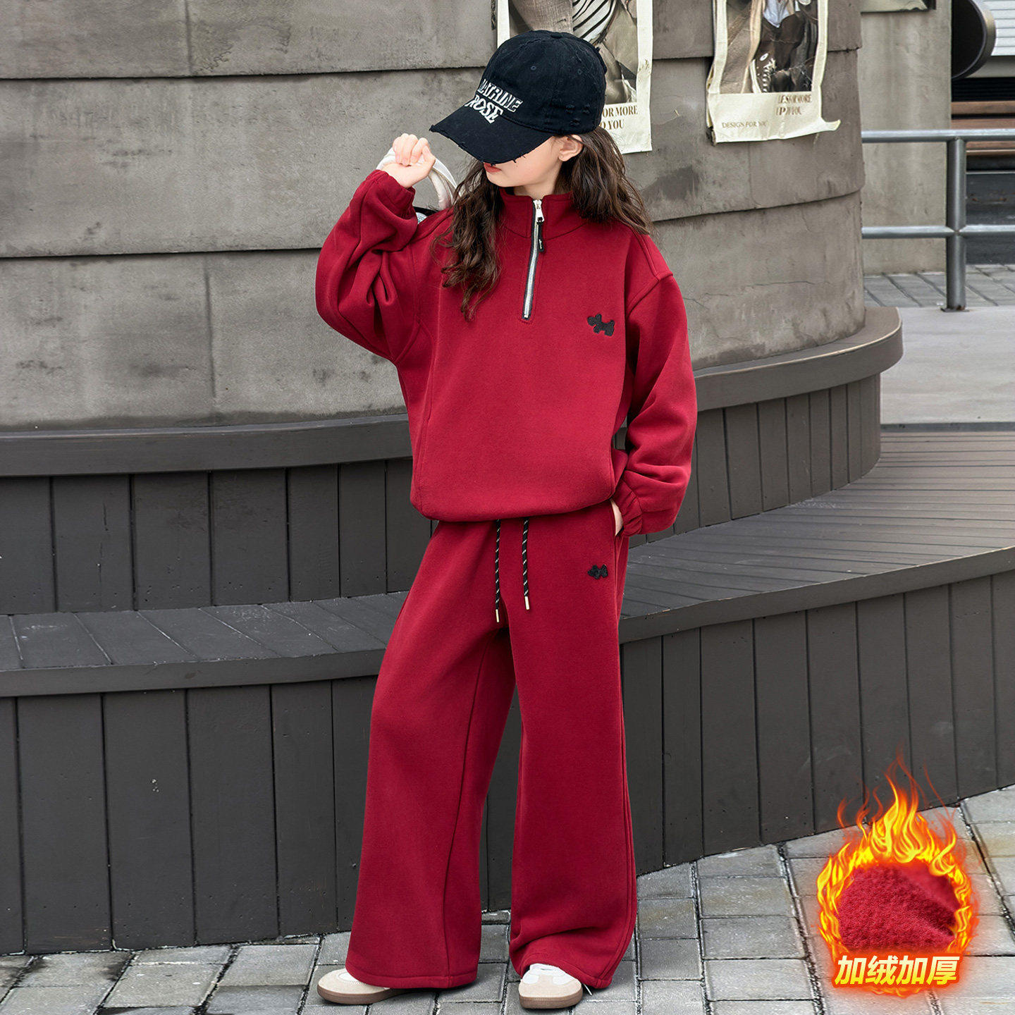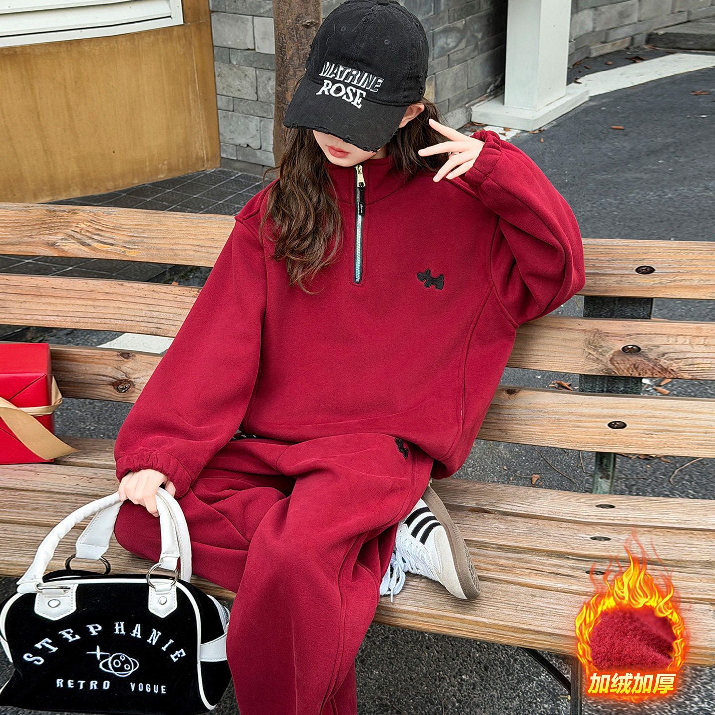初中生女孩冬装套装2025新款女童红色本命年衣服冬季女大童两件套