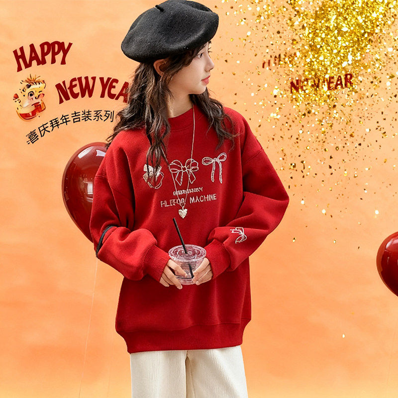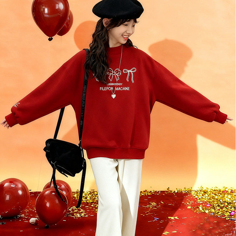 女大童本命年衣服冬装2026新款初中生女孩加绒上衣儿童马年拜年服