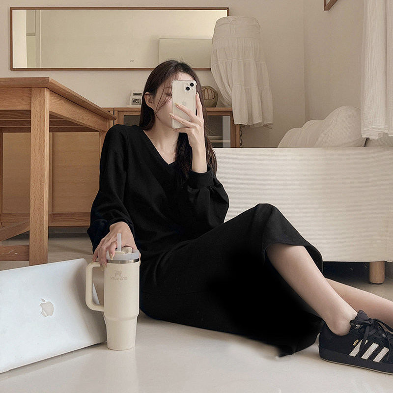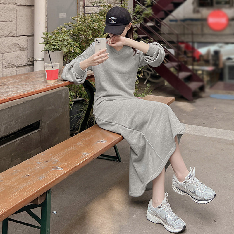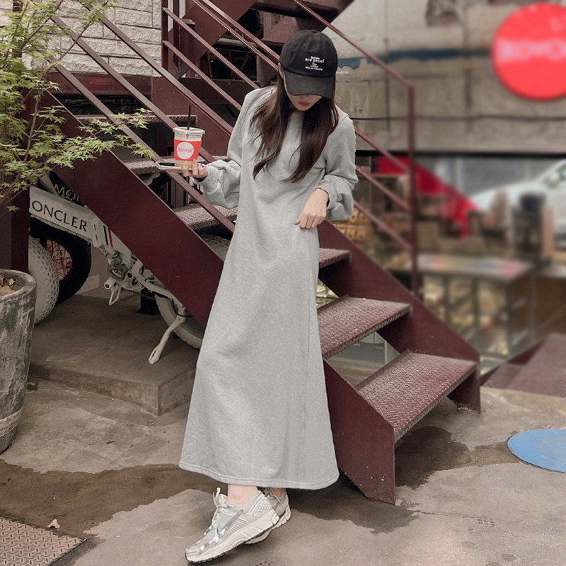气质高级感卫衣裙女冬季加绒加厚显瘦休闲大摆裙到脚踝长款连衣裙