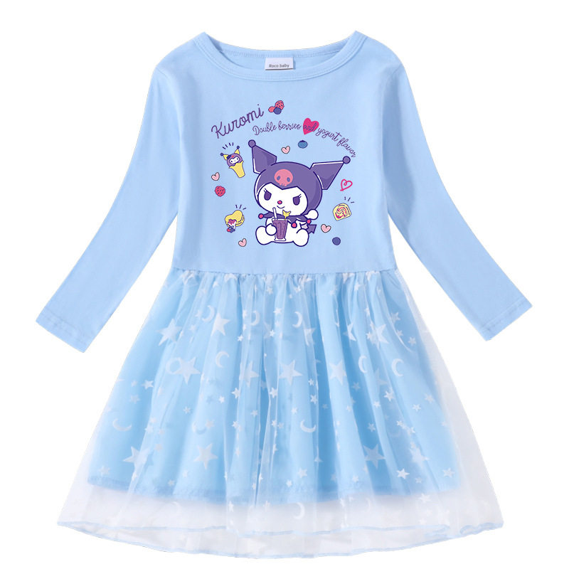 库洛米衣服女童连衣裙春秋新款女孩纯棉网纱长袖裙子宝宝薄款春装